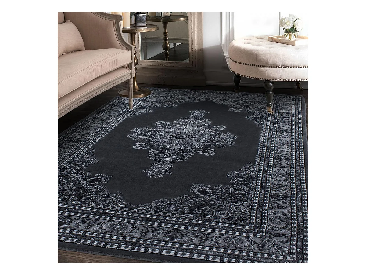 Tapis orient 200x290 rectangle gris tissé motifs orientaux BISKO 2