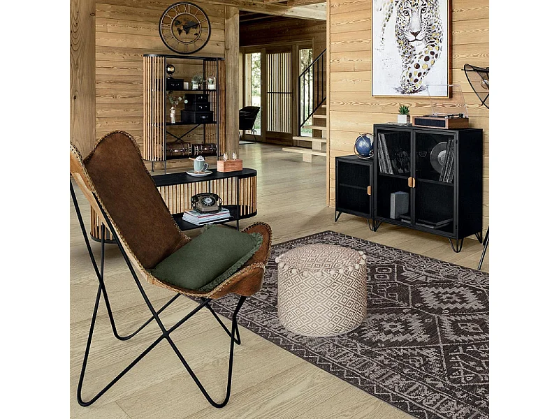 Tapis extérieur ou intérieur en polypropylène Gris tissé losanges 120 x 170 cm
