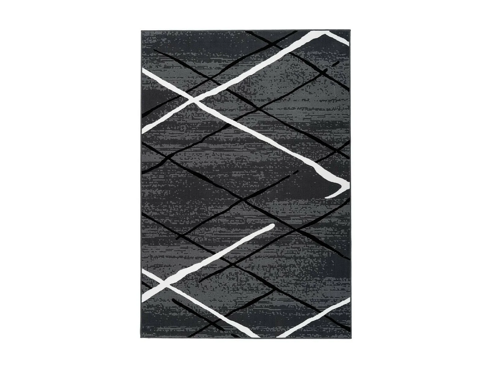 Tapis Vintage à Poils Courts "Iglesia" Gris & Noir 120 x 170 cm