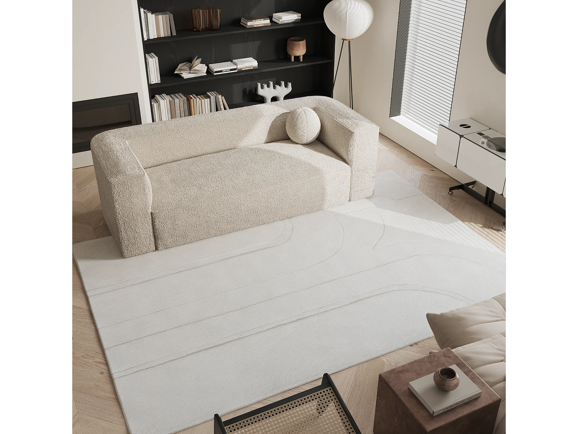 Tapis rectangulaire en laine 160x230cm blanc cassé JARA