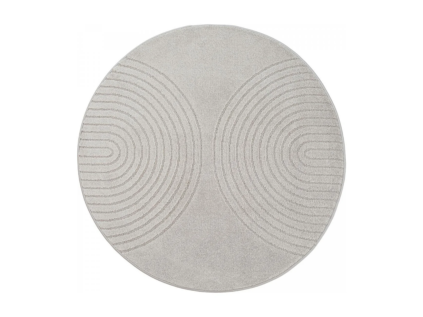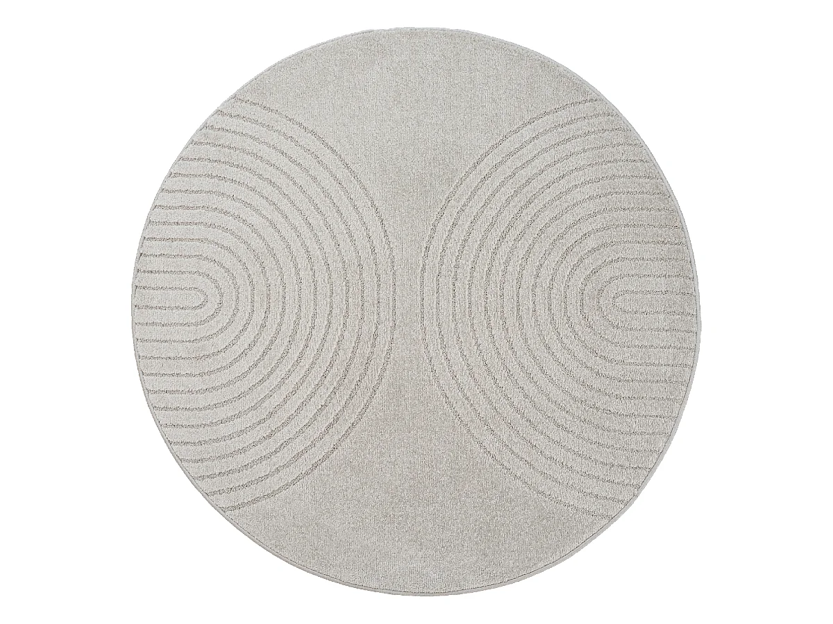 tapis entrée Ø120cm tissé gris et blanc rond motif scandinave PISTIOUM