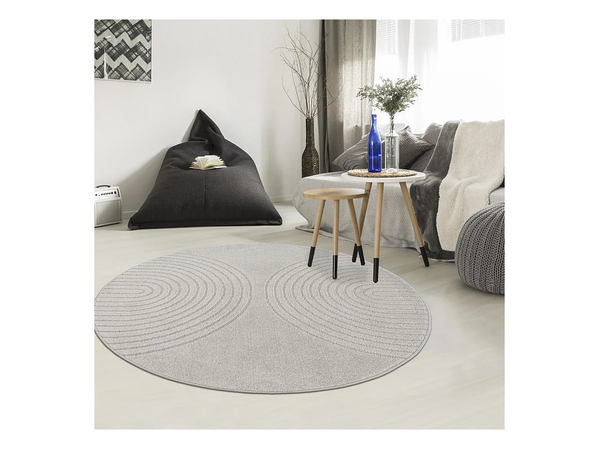Tapis rond DEMILU ∅ 120 cm Gris Tapis facile d'entretien idéal pour la chambre
