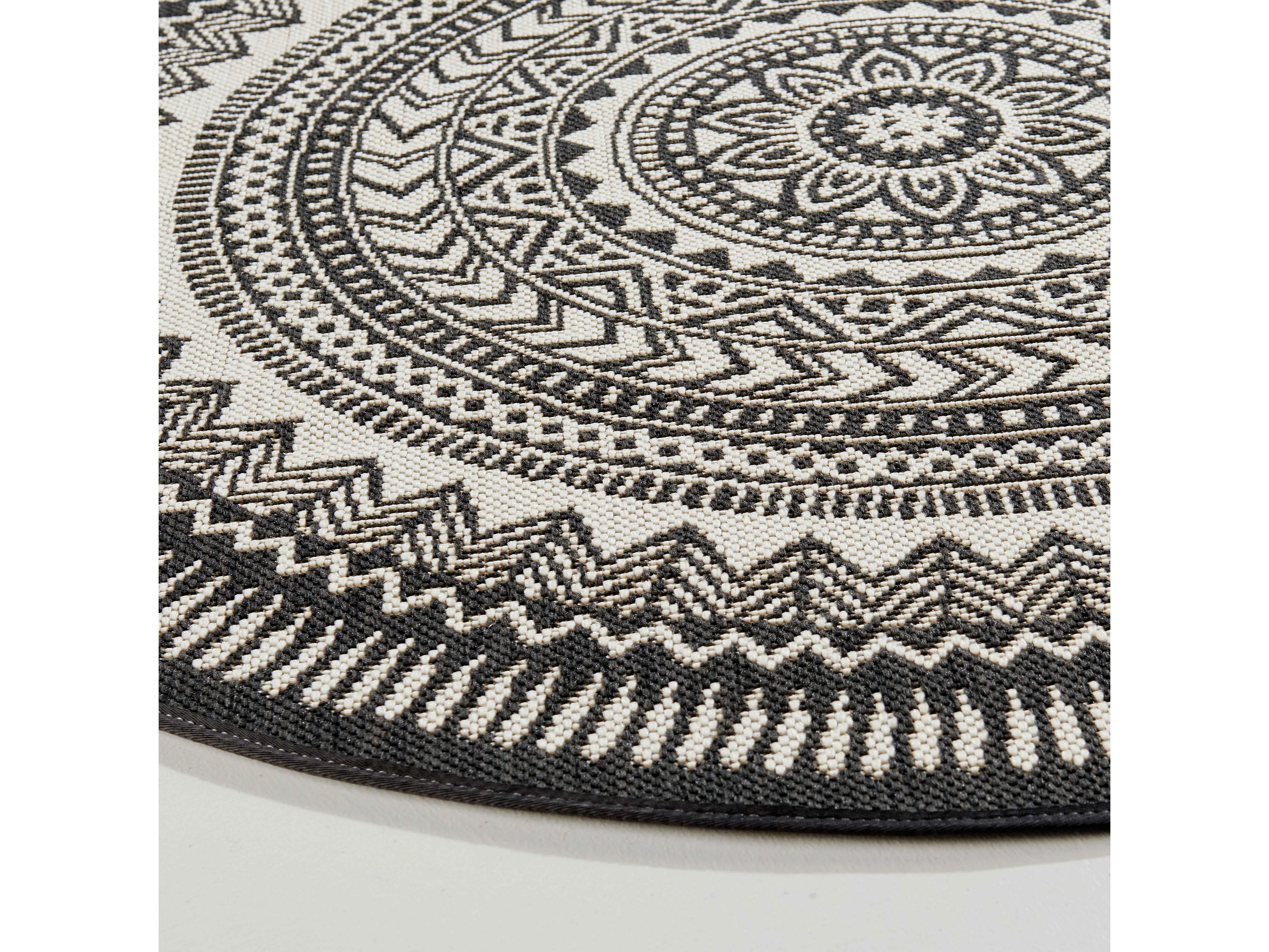 Tapis extérieur Ø160cm rond tissé kilim beige et noir JUTE ART 5