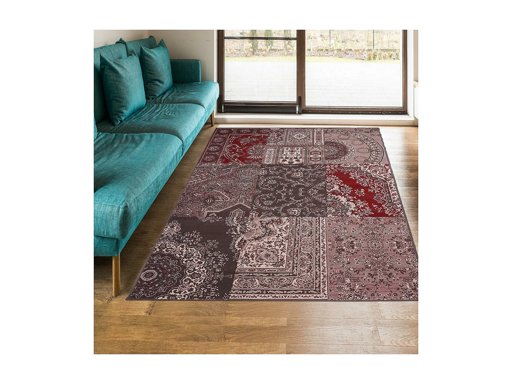 tapis salle à manger 240x330 tissé gris rectangle motif baroque LYN1 NYBRO