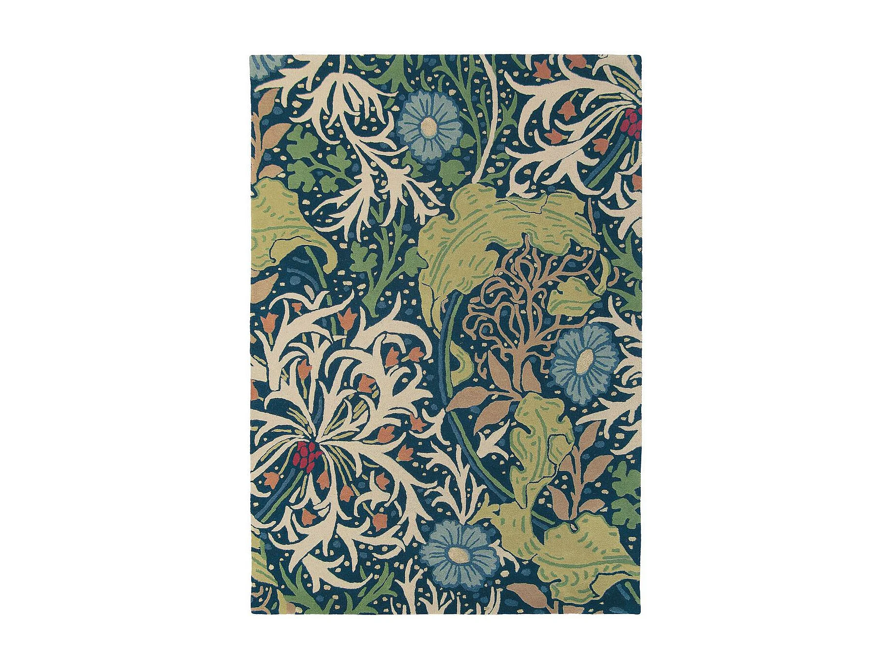 tapis salle à manger 250x350 fait à la main en laine bleu marine et vert