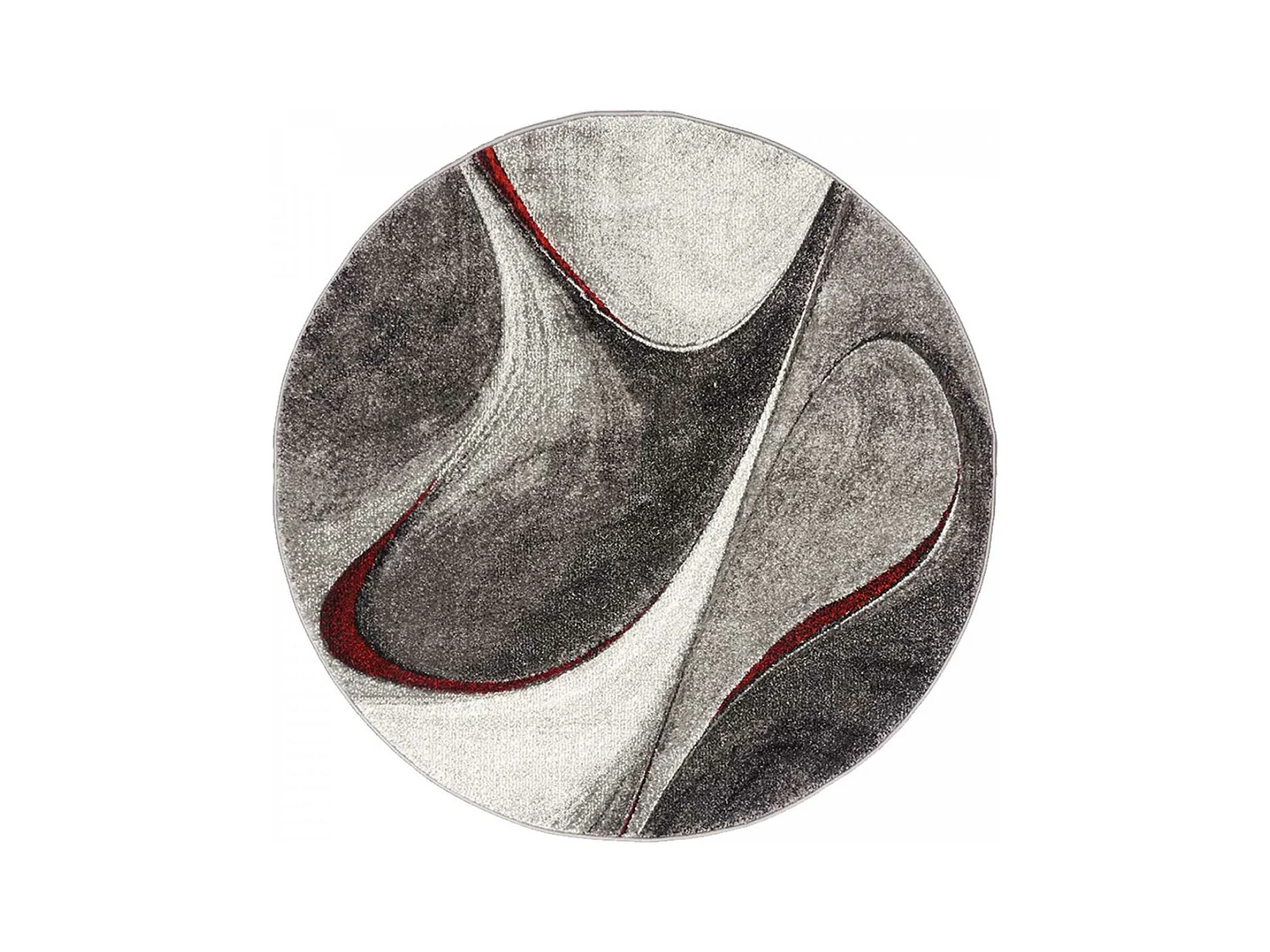 tapis chambre Ø120cm tissé rouge et gris rond motif géométrique LYN8 MADILA
