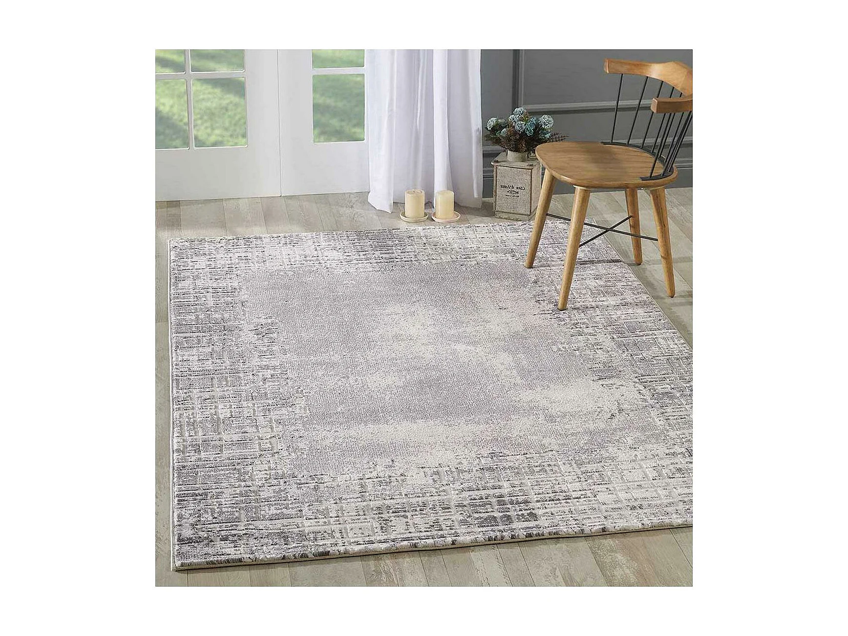 tapis salon 120x170 tissé gris rectangle motif baroque LYN1 NYBRO