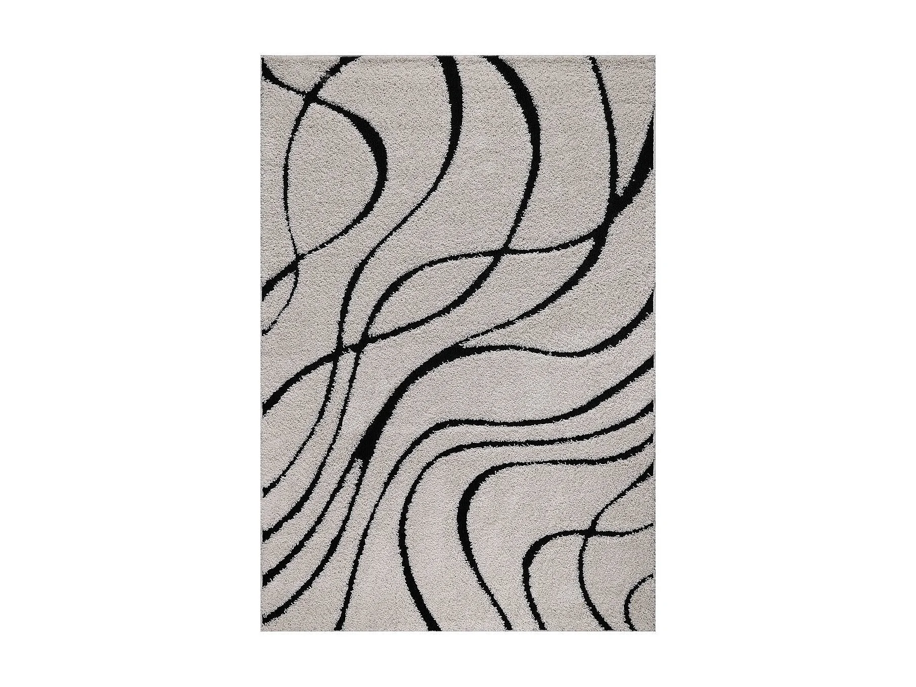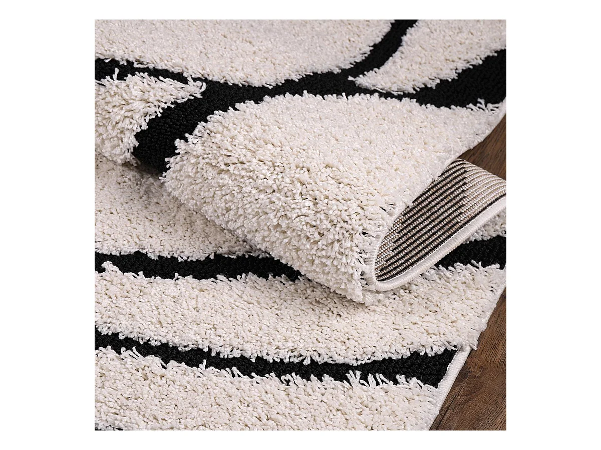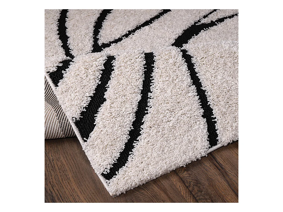 Tapis shaggy 160x220 rectangle tissé crème motif géométrique POUDA
