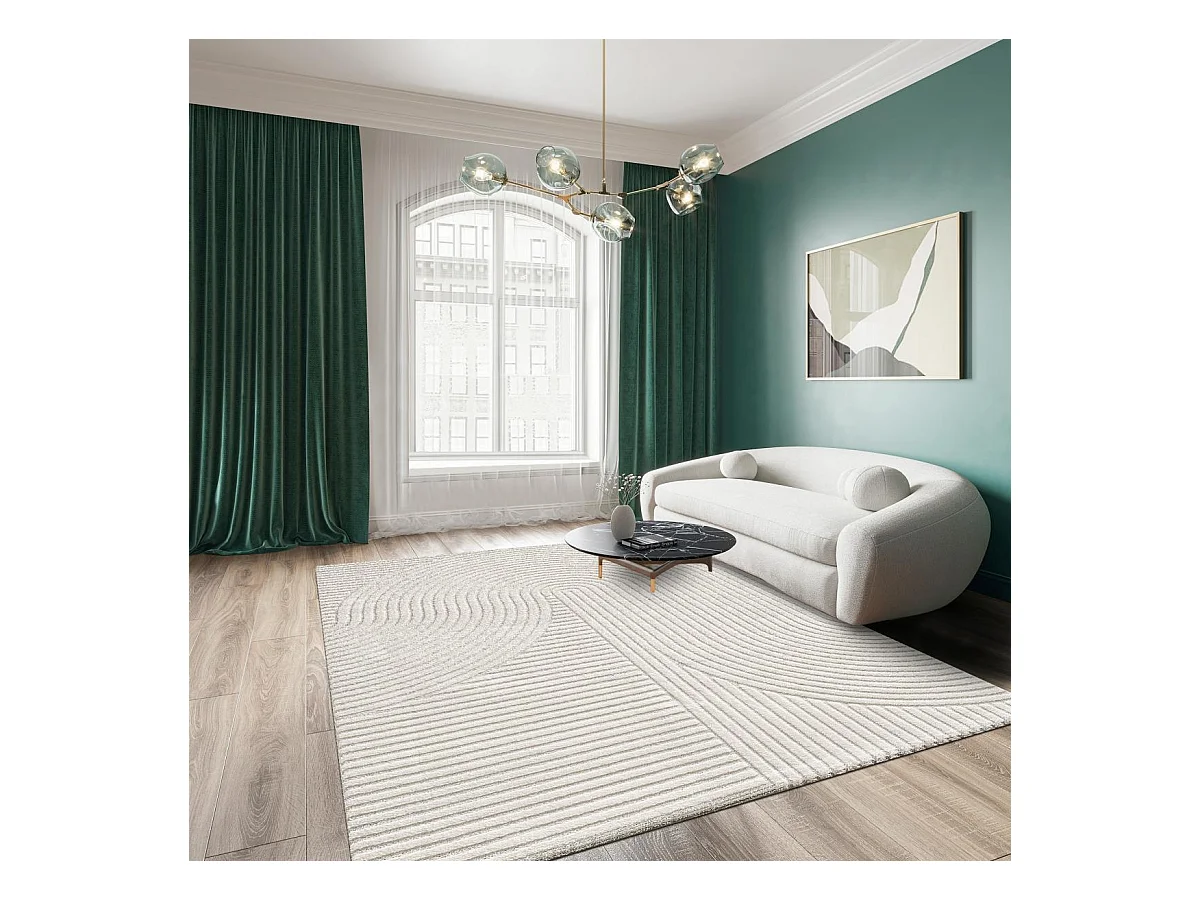 tapis salon 160x230 tissé crème rectangle motif simple LYN9 CERLOS