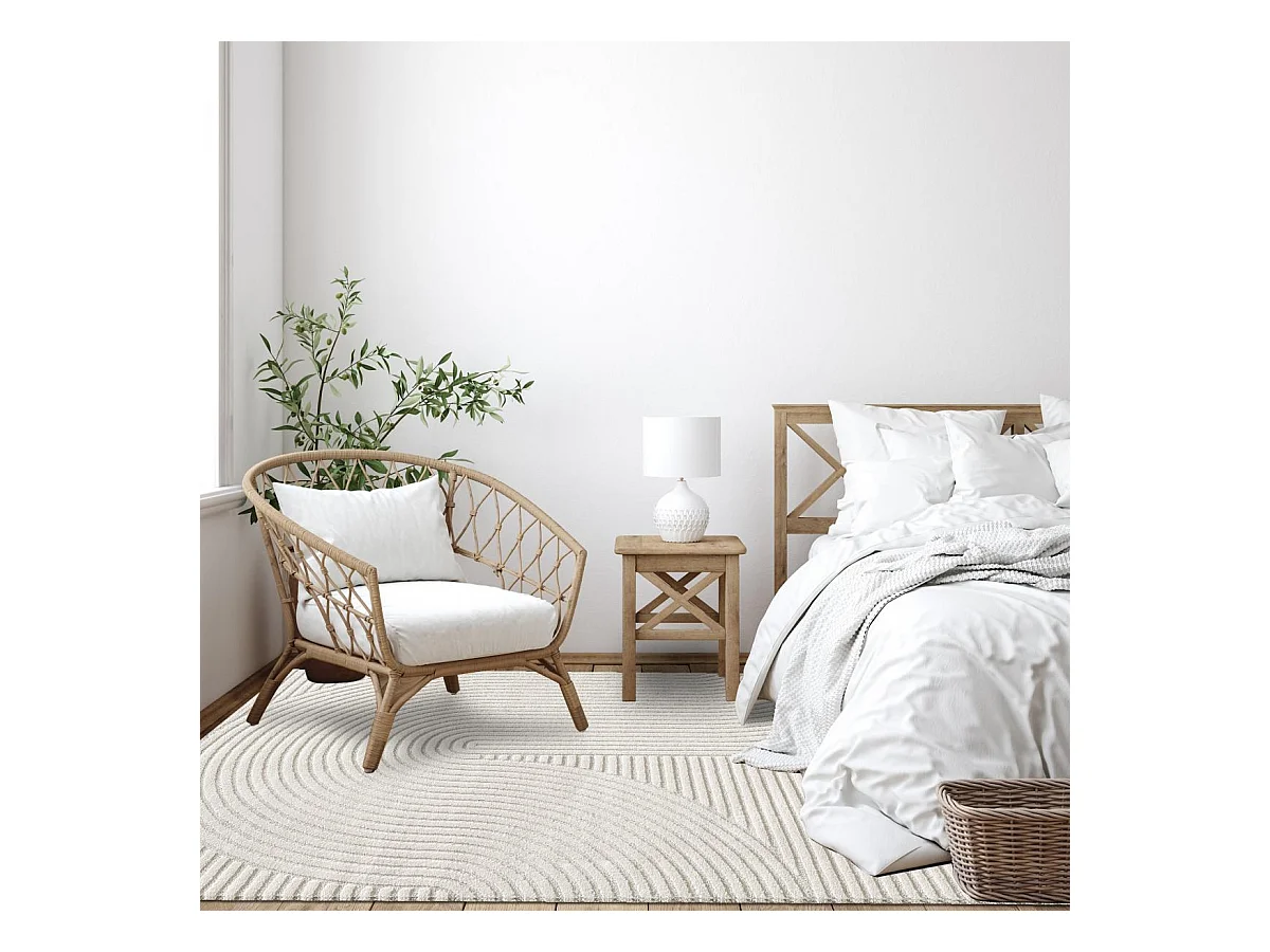 tapis salon 160x230 tissé crème rectangle motif uni SAKRDA