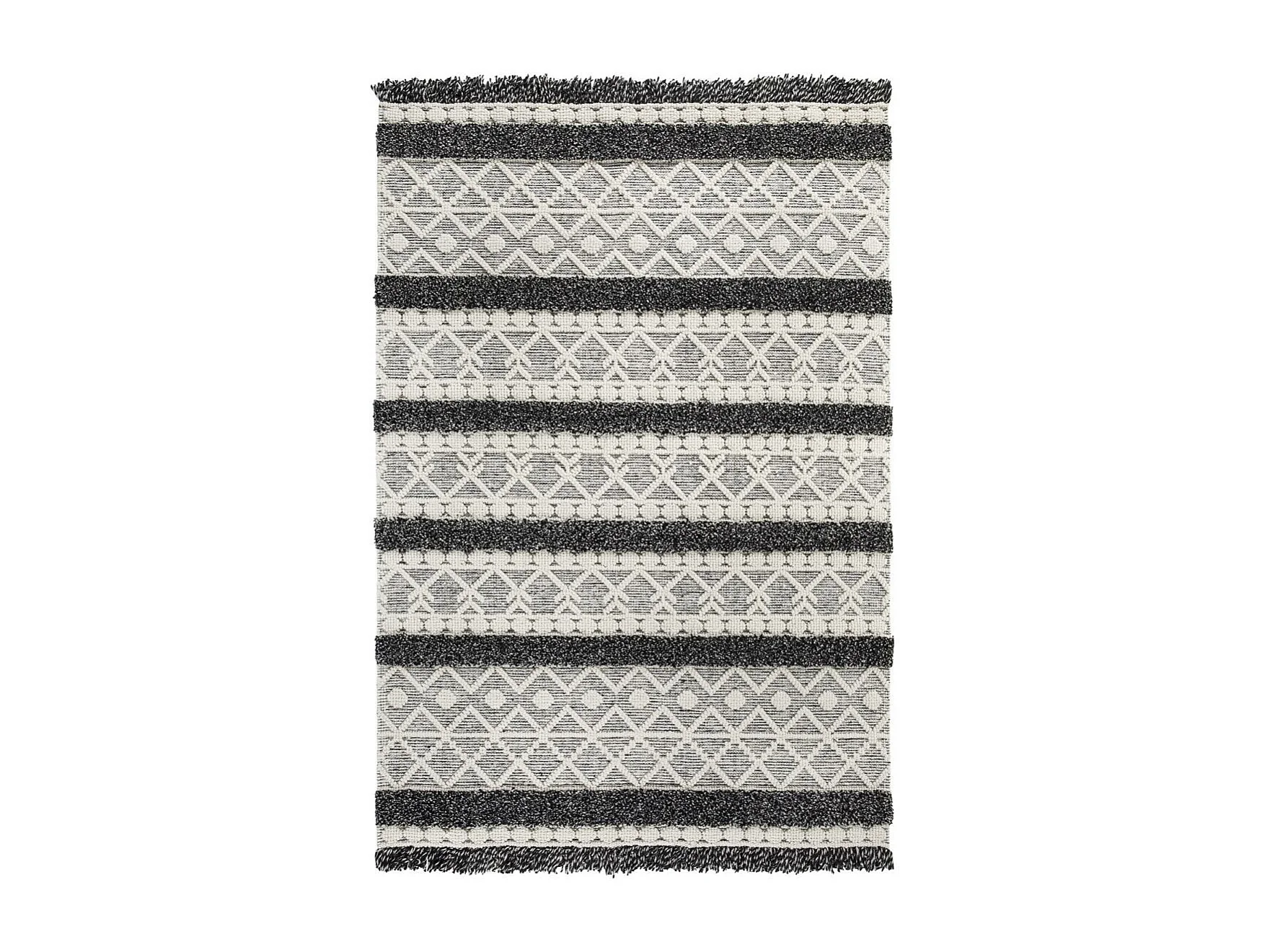 tapis chambre 160x230 tissé en laine crème rectangle motif ethnique NOUKA