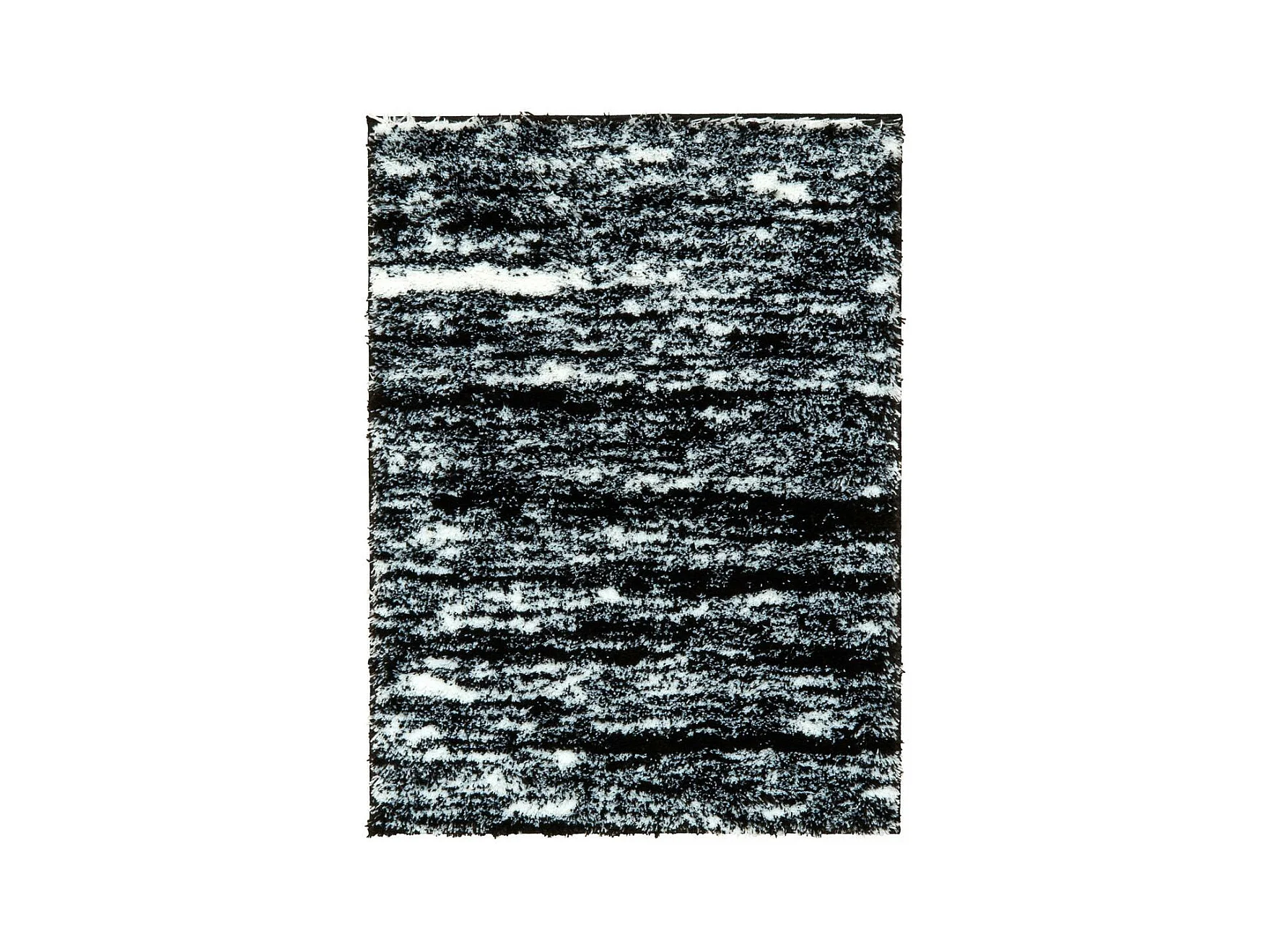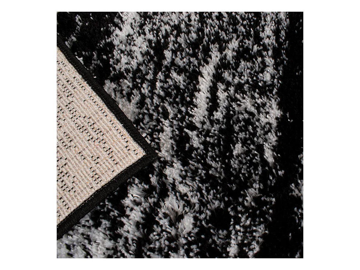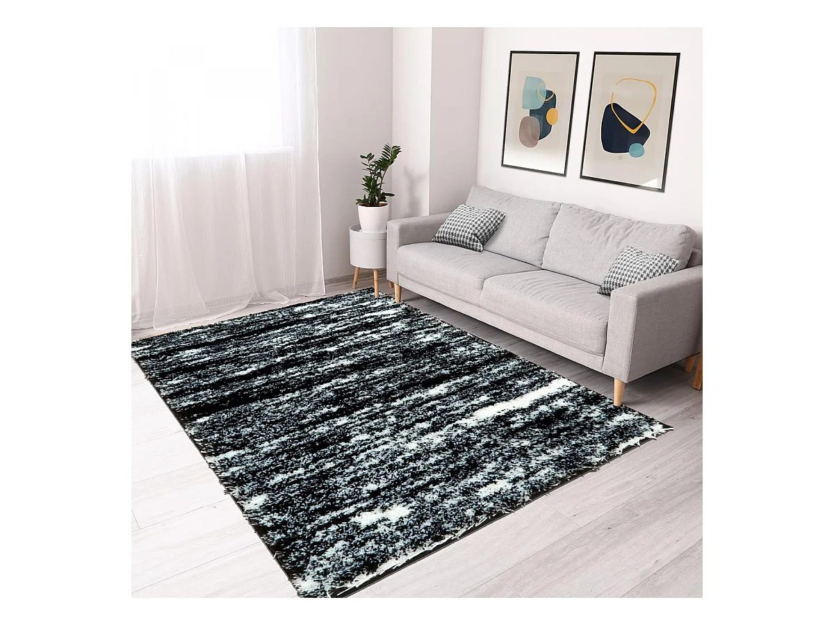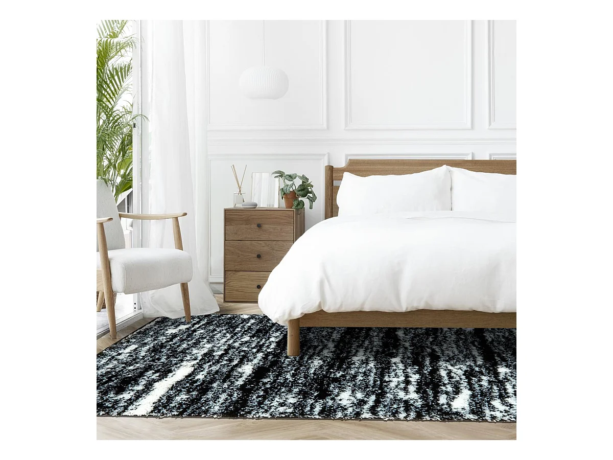 Tapis shaggy 200x290 rectangle tissé noir et blanc motif faux uni EMBER