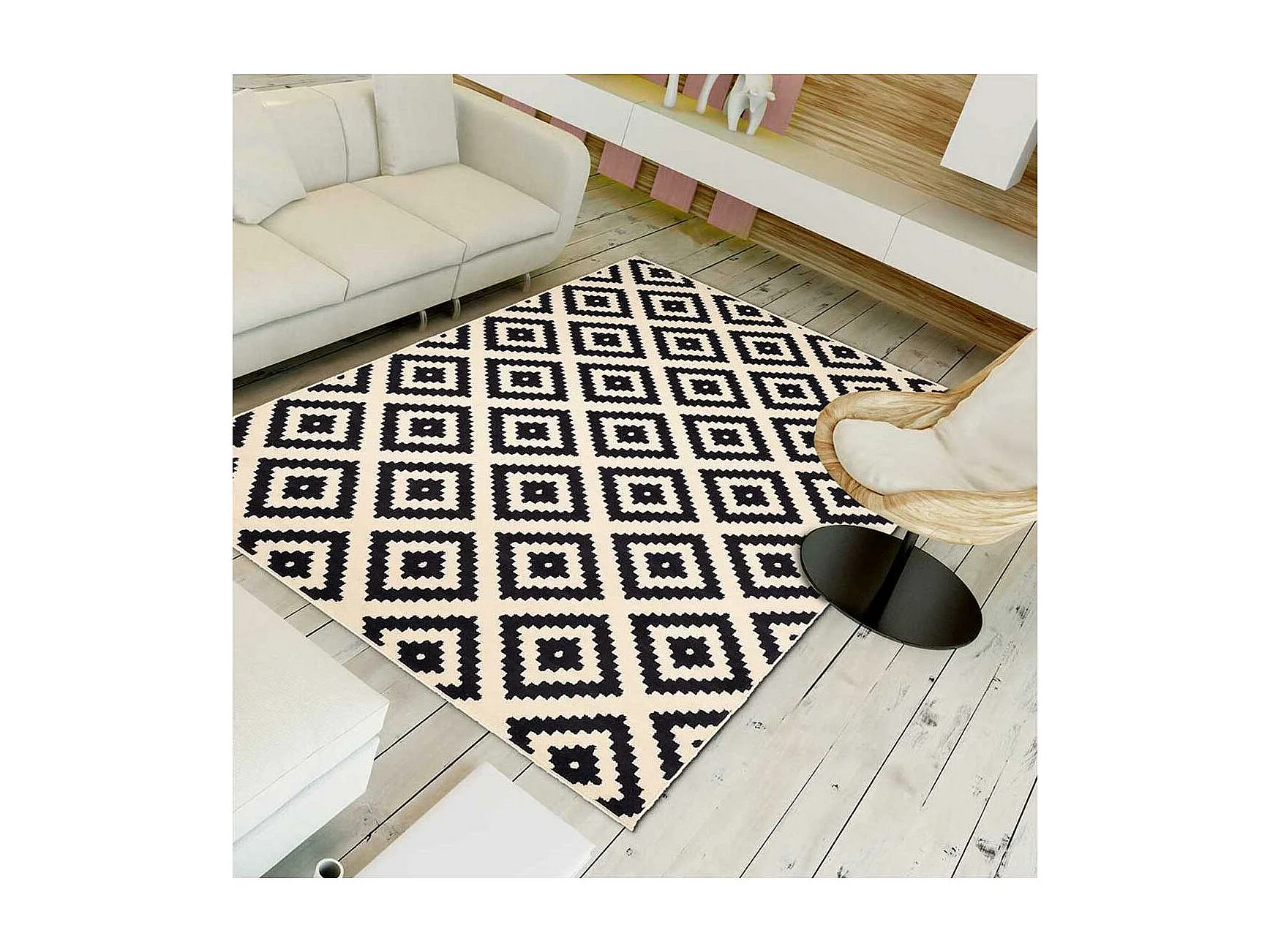 tapis grand salon 270x370 tissé crème rectangle motif scandinave LYN1 ROMA