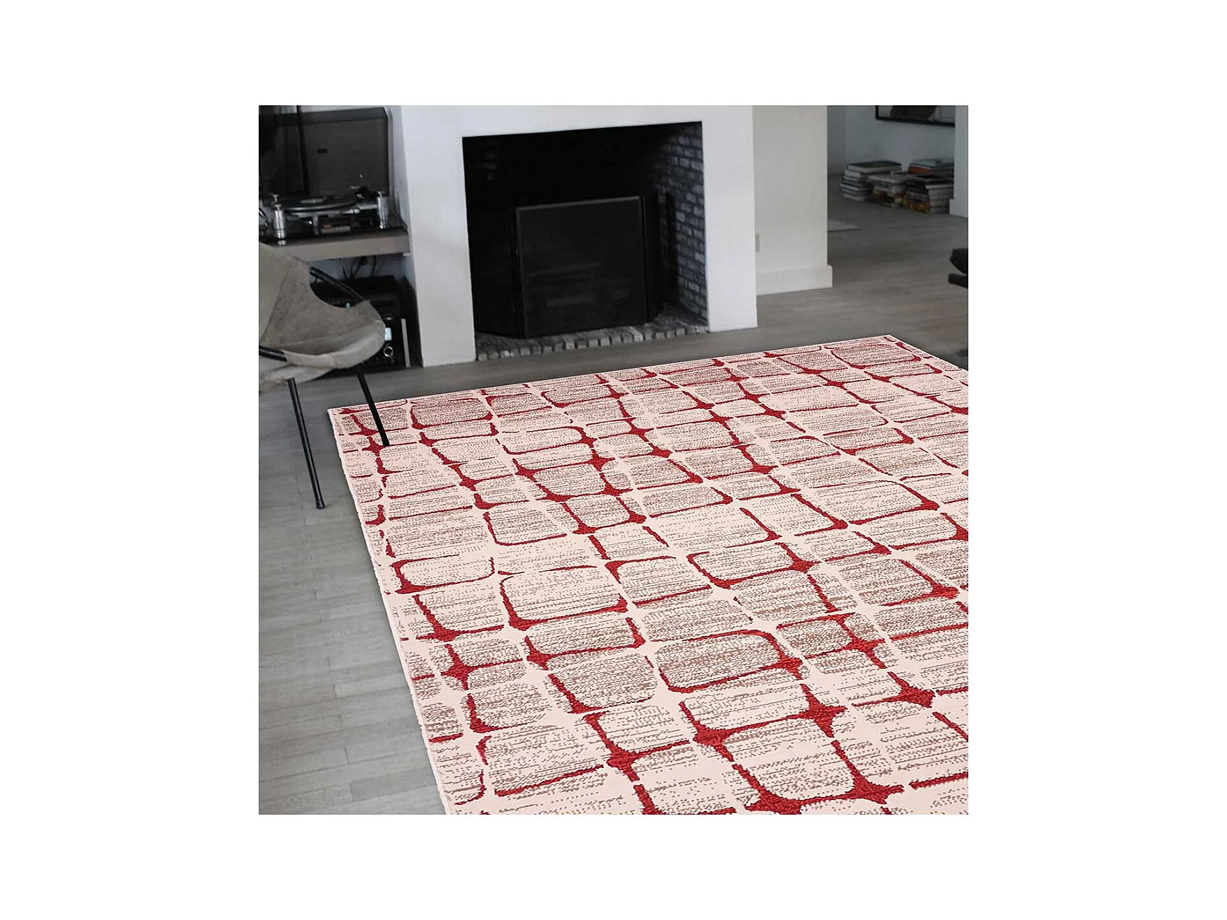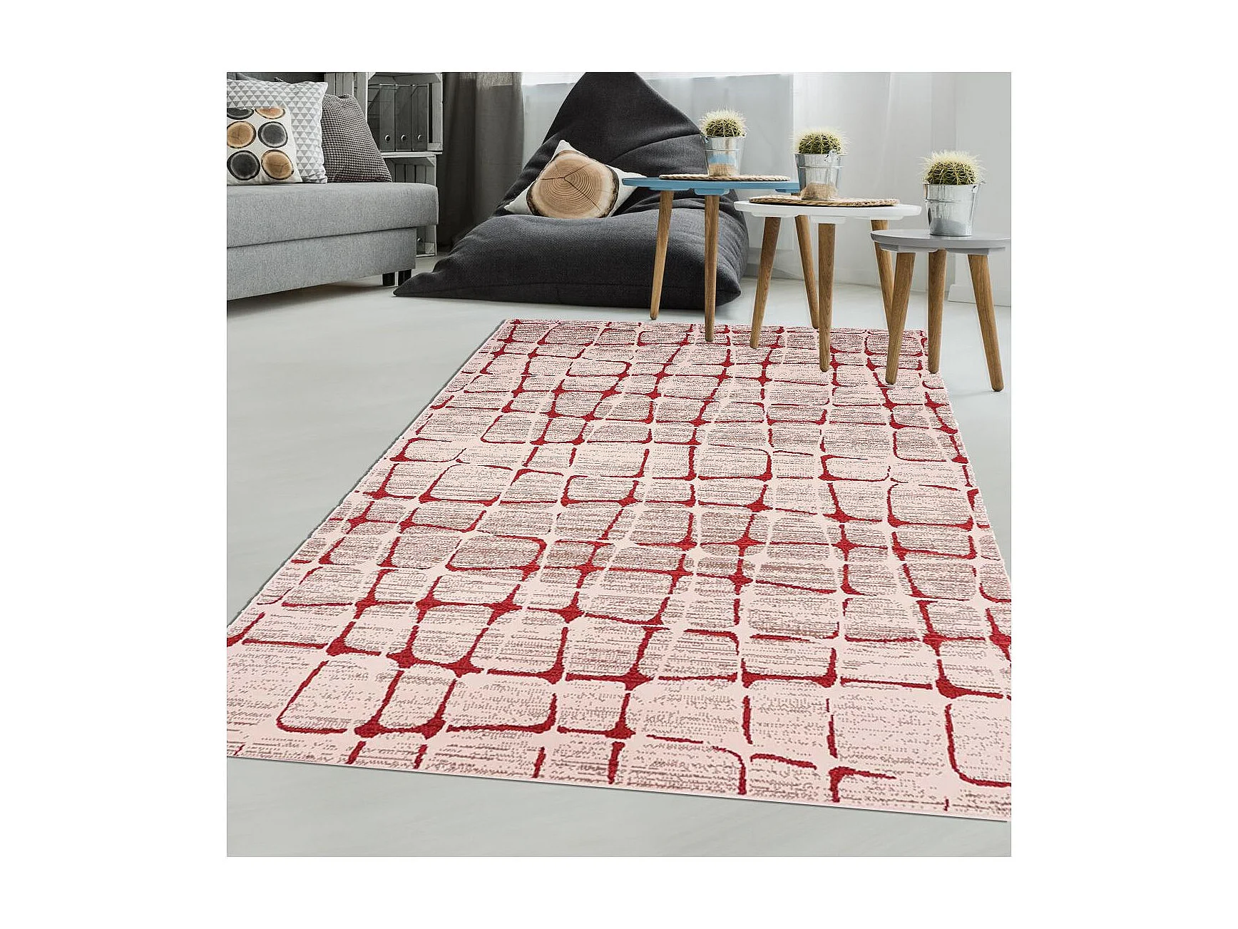 tapis chambre 60x110 tissé blanc cassé rectangle motif abstrait LYN1 MALMO