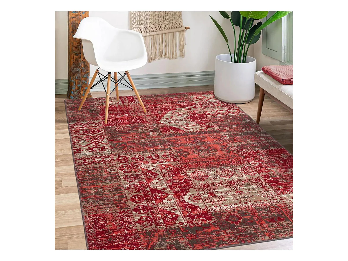 tapis chambre 80x150 tissé rouge rectangle motif ethnique LYN1 PATWORK