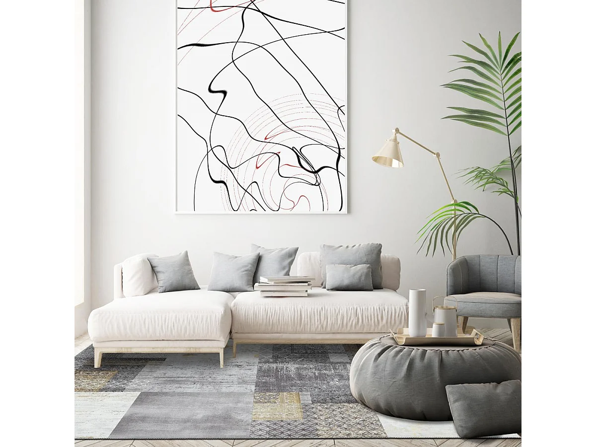 tapis salon 160x230 tissé en coton gris et noir rectangle motif géométrique TUBE