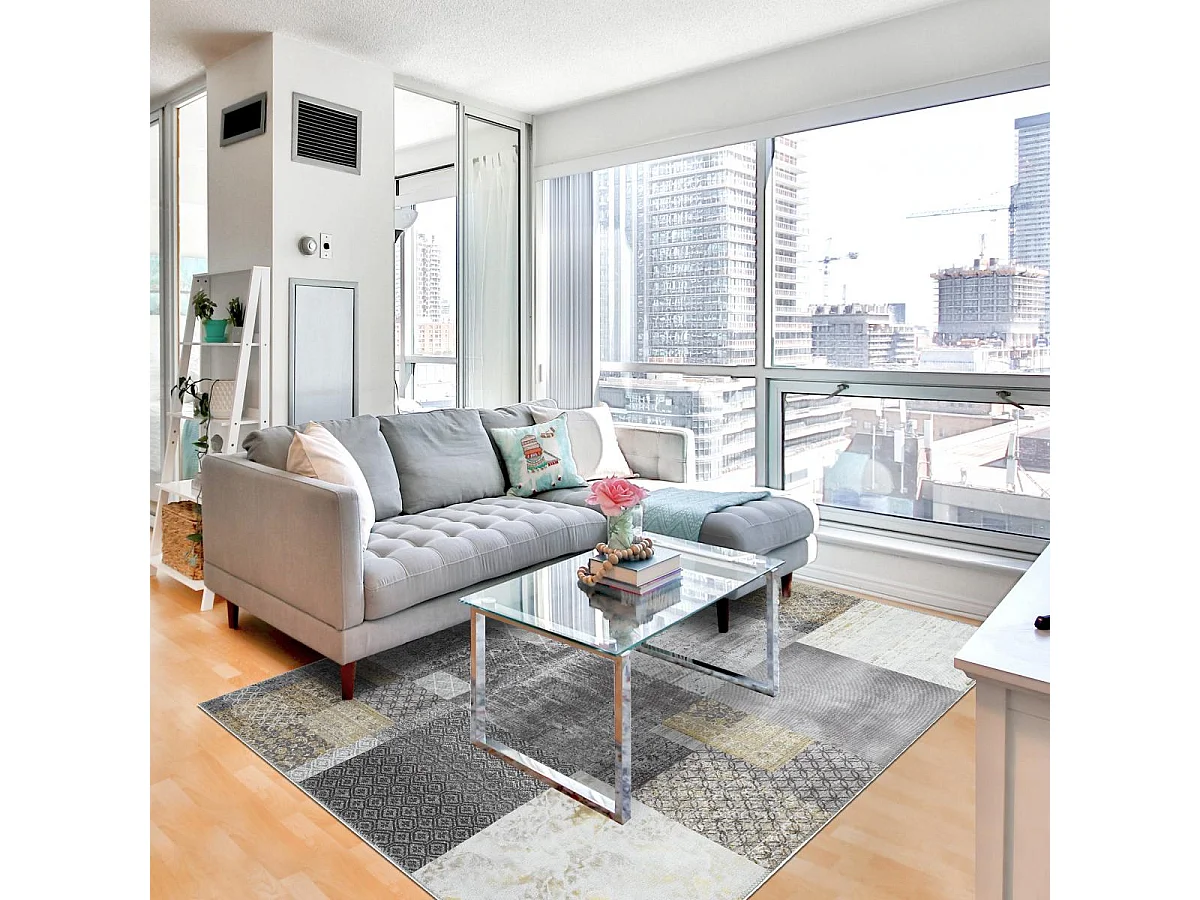 Tapis kilim 200x250 rectangle tissé en coton gris motif abstrait TRIGREY