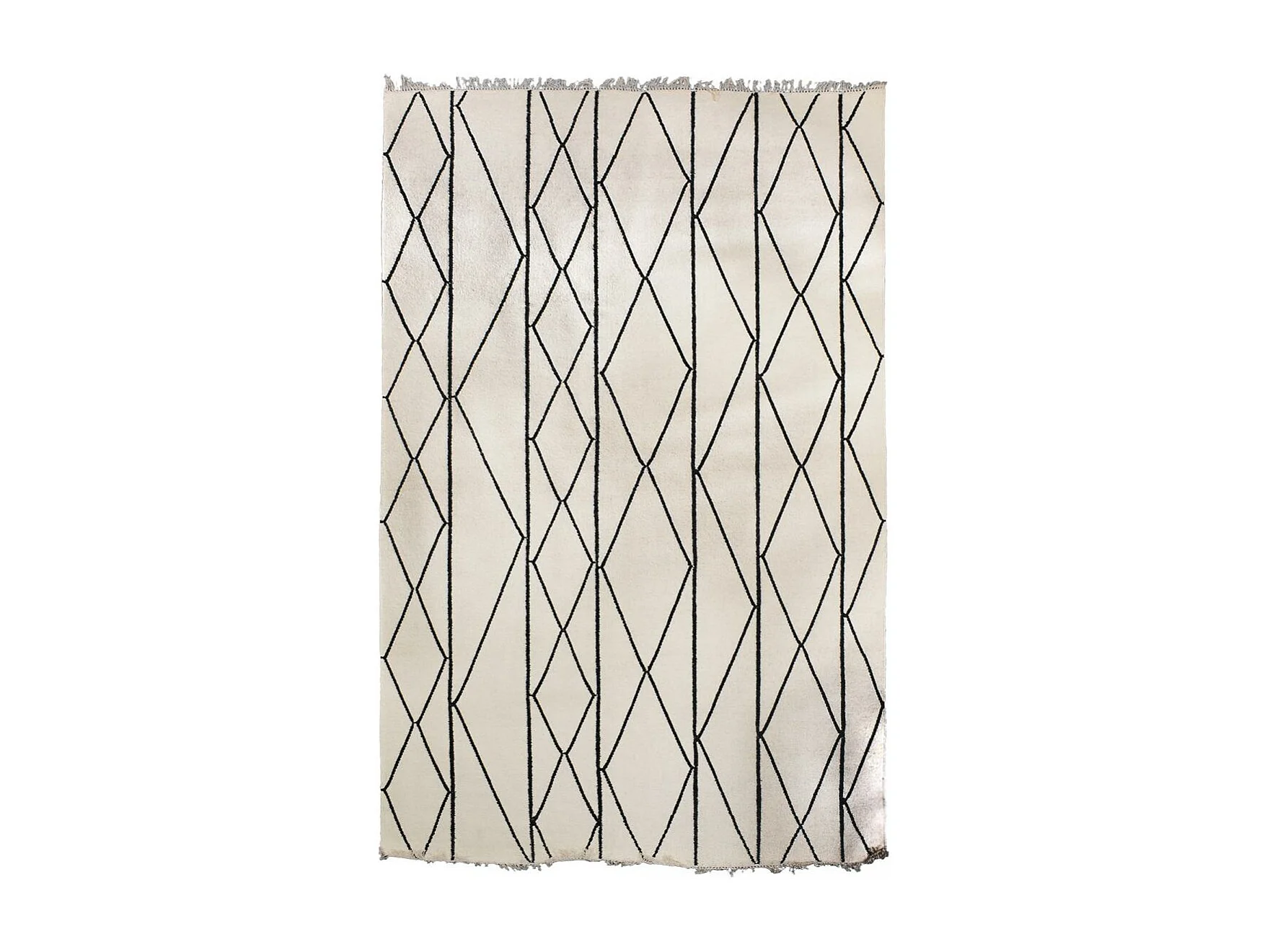 tapis chambre 120x180 fait main en laine beige et noir rectangle motif scandinave