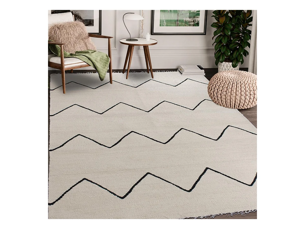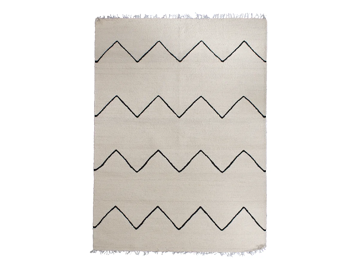 tapis grand salon 250x350 fait main en laine beige et noir motif berbère