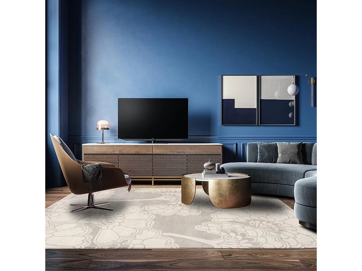 tapis entrée 170x240 fait à la main en laine crème rectangle motif floral