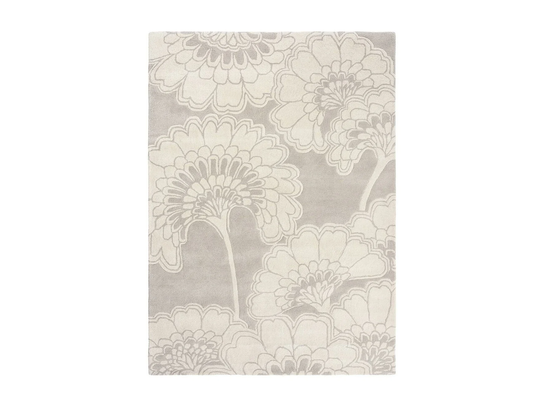 tapis salle à manger 200x280 fait à la main en laine crème motif floral