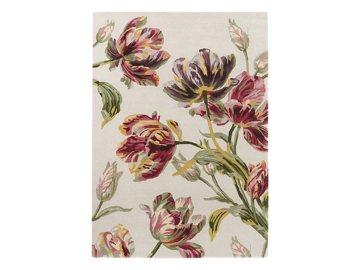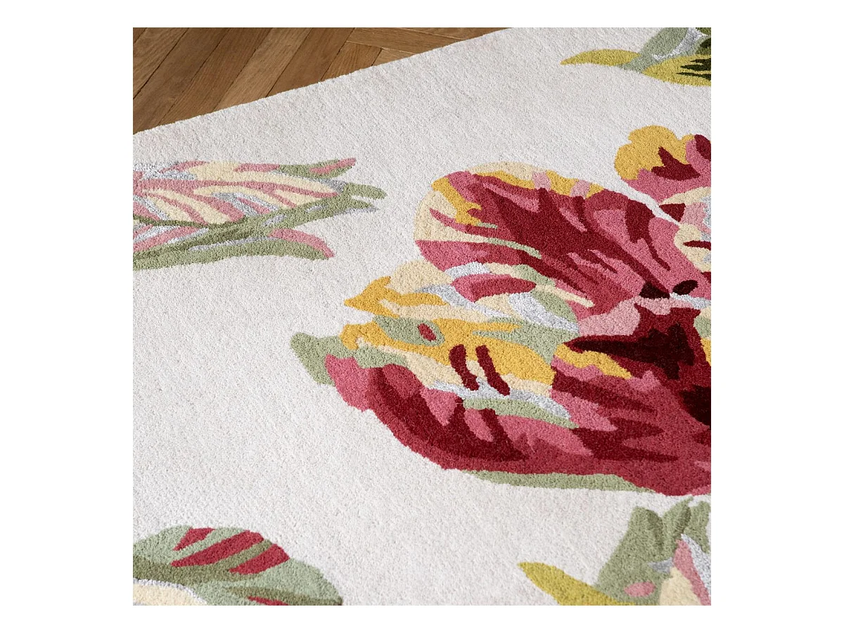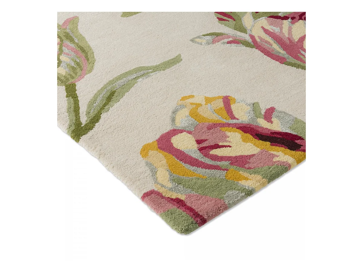 tapis salon 170x240 fait main en laine crème et vert rectangle motif floral