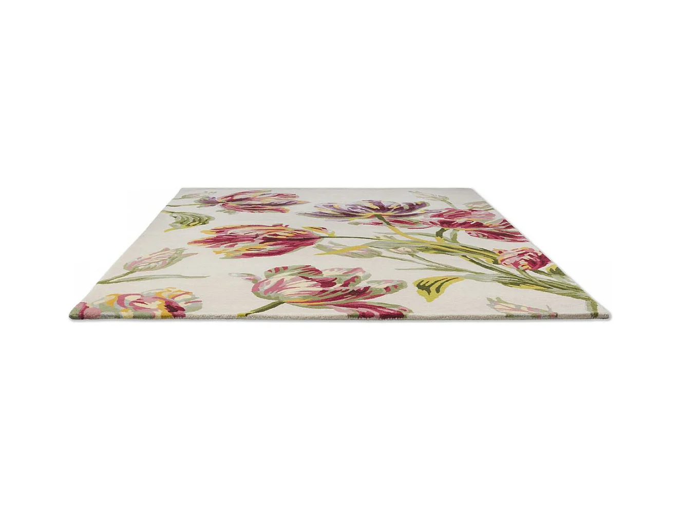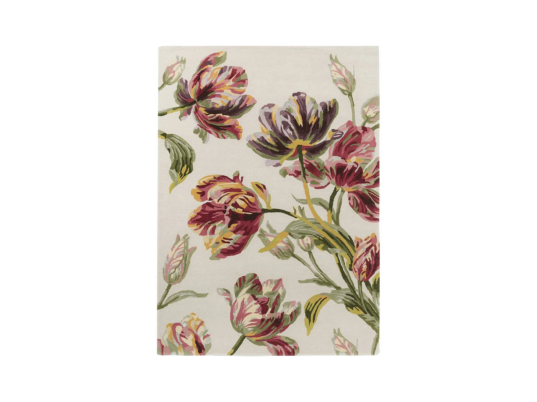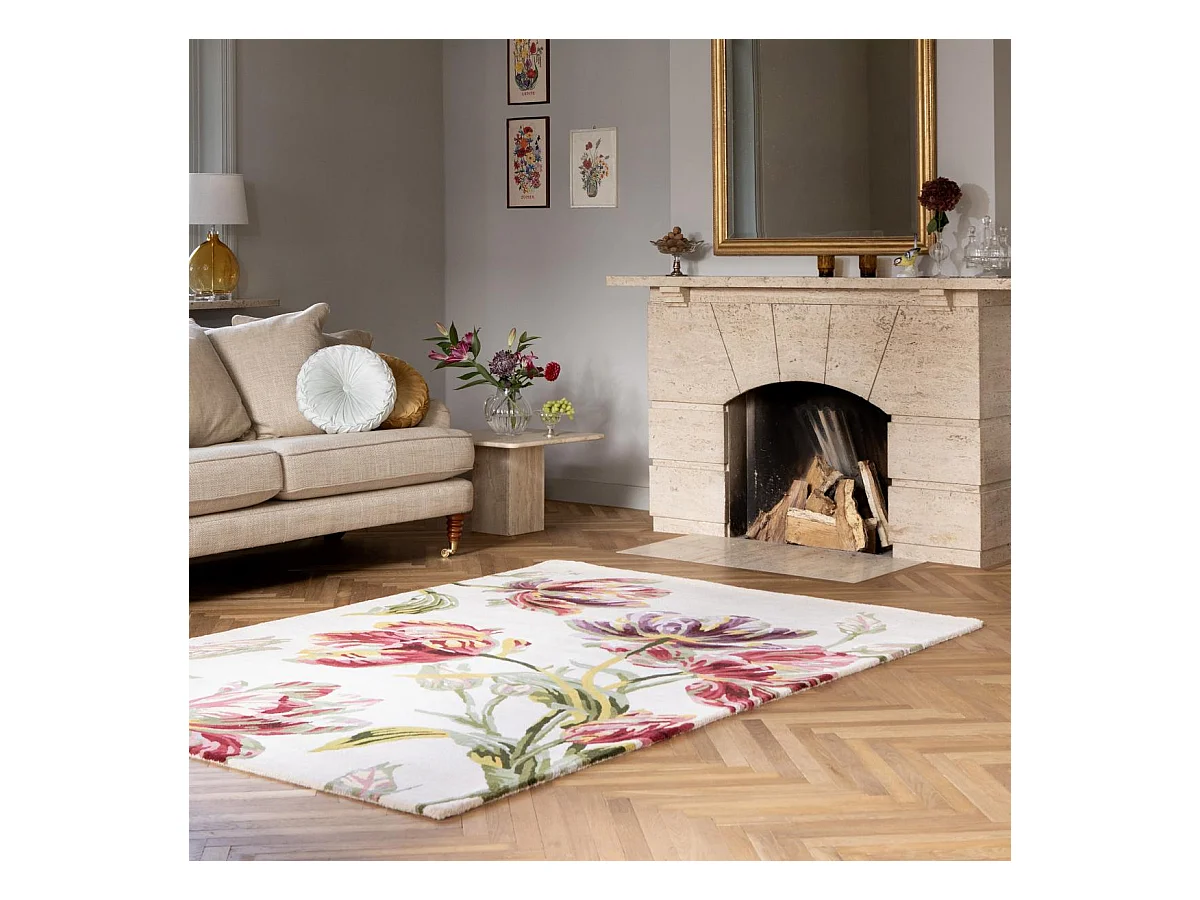 tapis salon 170x240 fait main en laine crème et vert rectangle motif floral