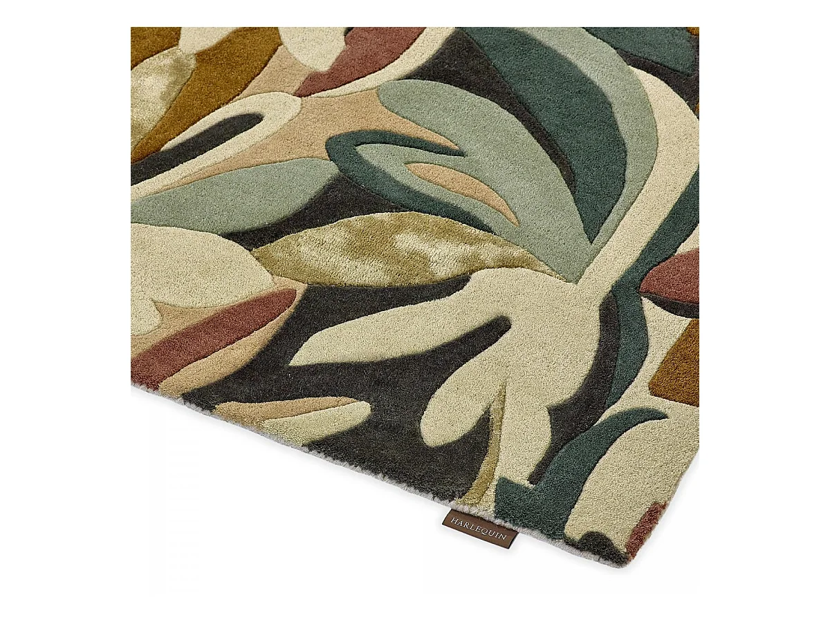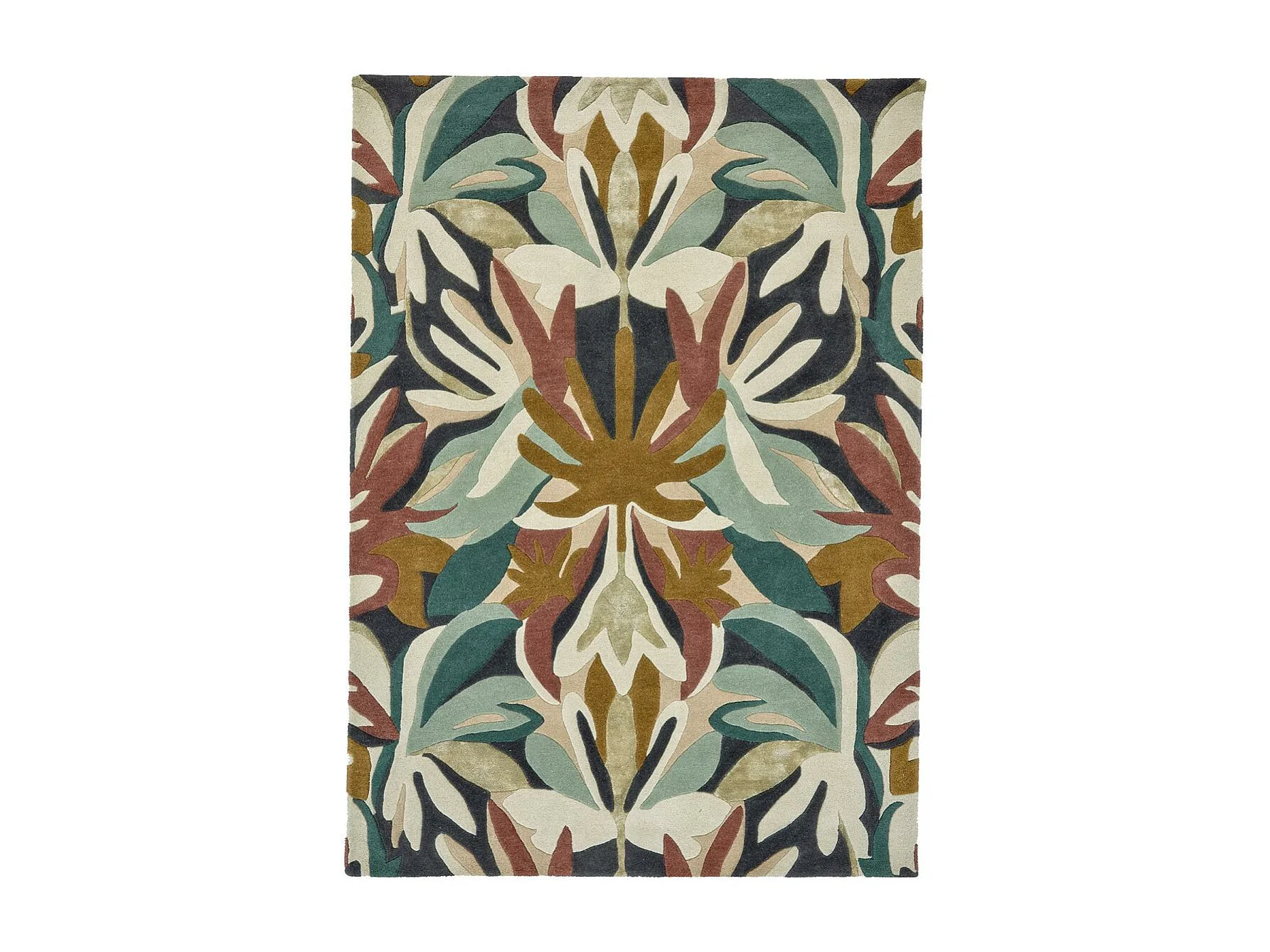 tapis grand salon 250x350 fait à la main en laine vert et beige motif floral