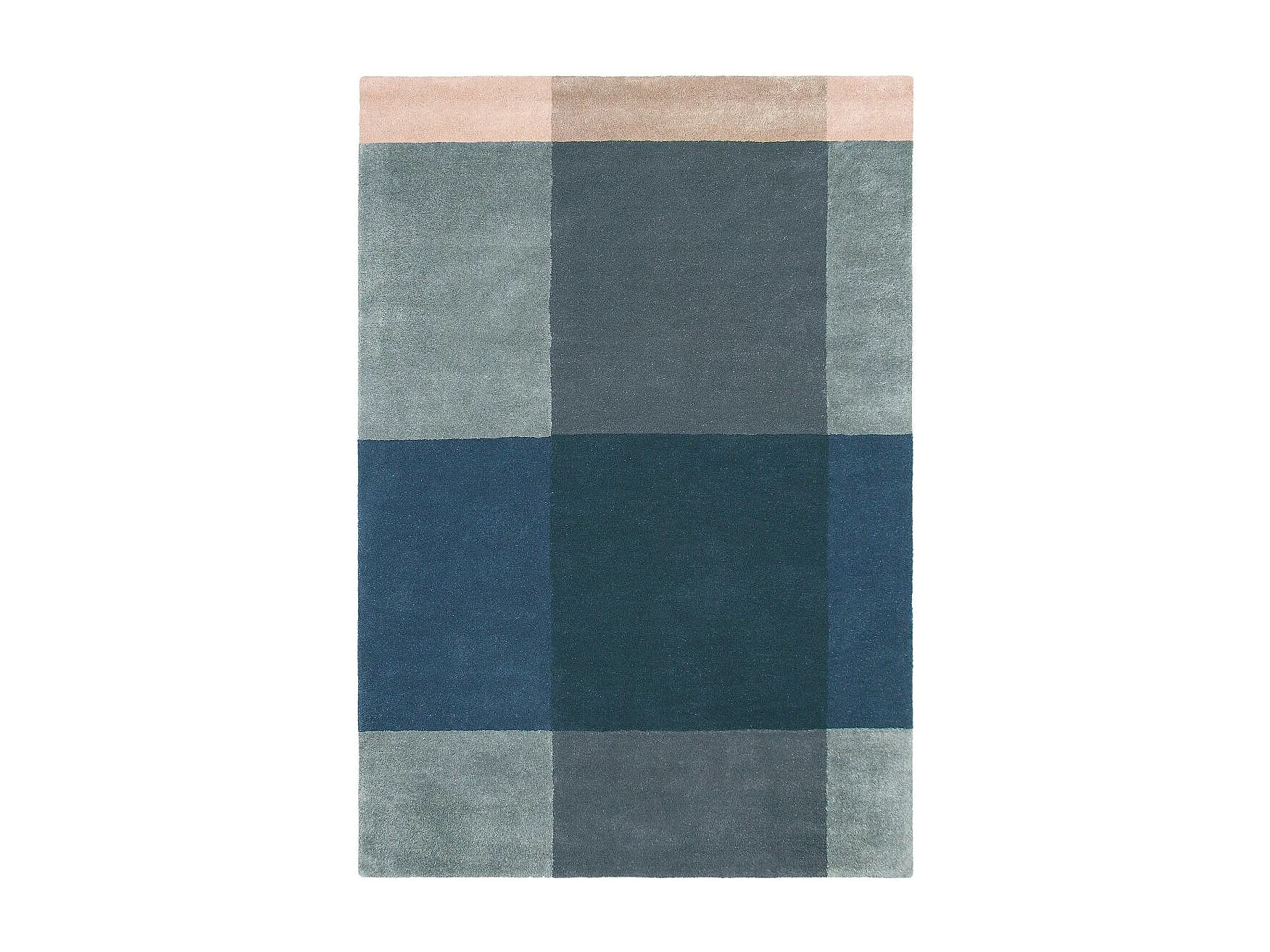 tapis entrée 140x200 fait à la main en laine bleu et gris motif seventies