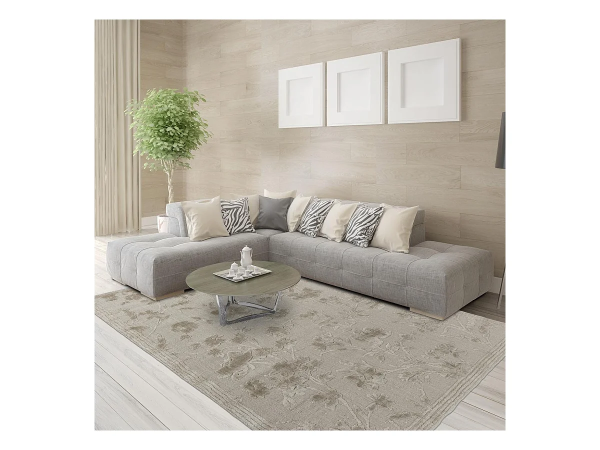 tapis salon 170x240 fait main en bambou beige rectangle motif floral RYE