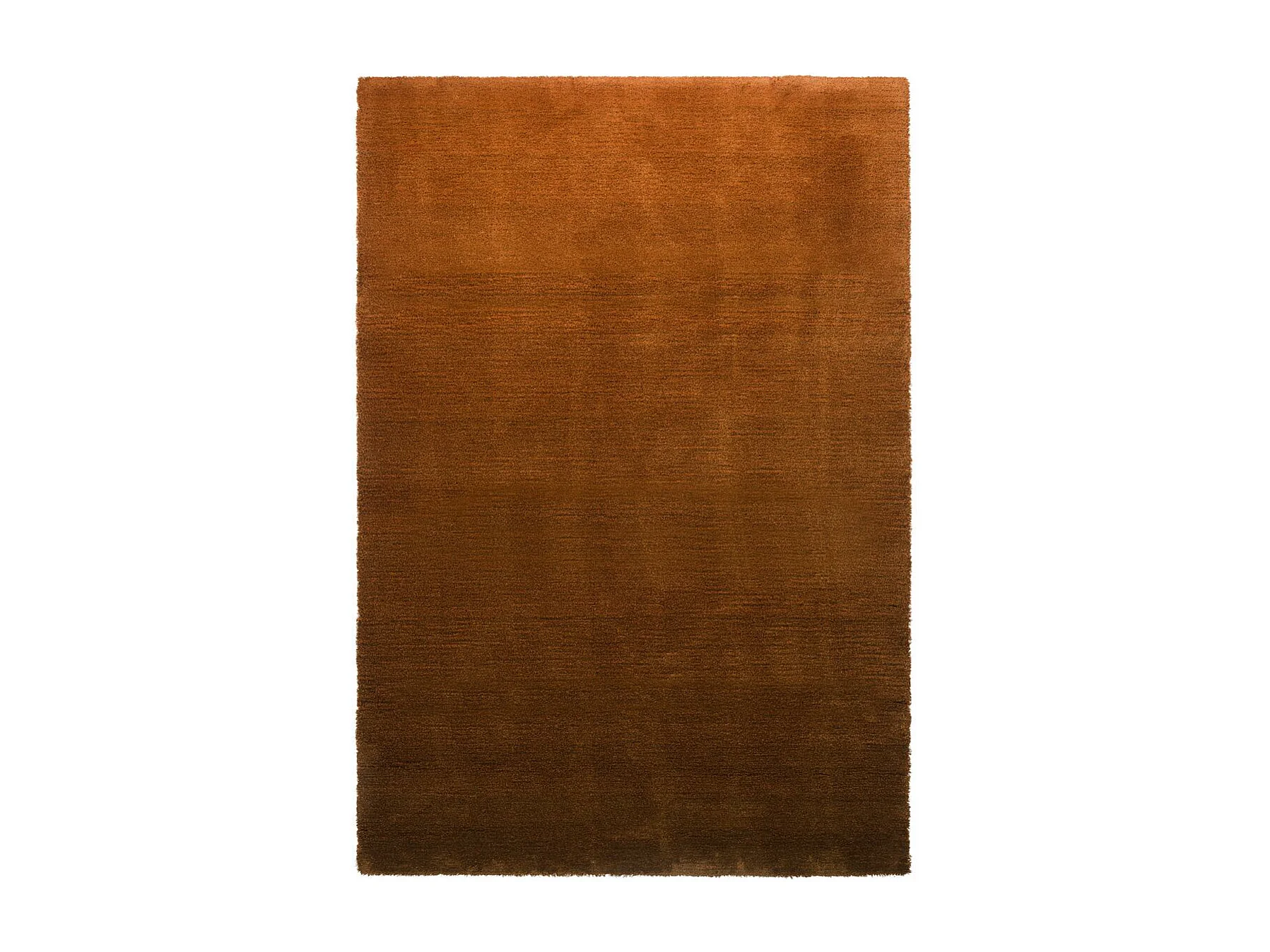 tapis salon 170x240 tufté en laine orange et marron rectangle motif faux uni