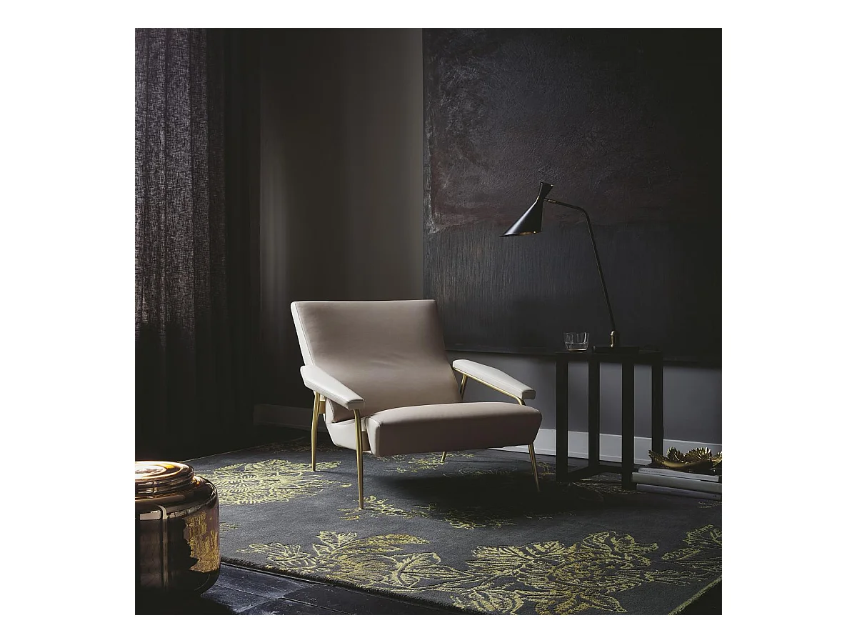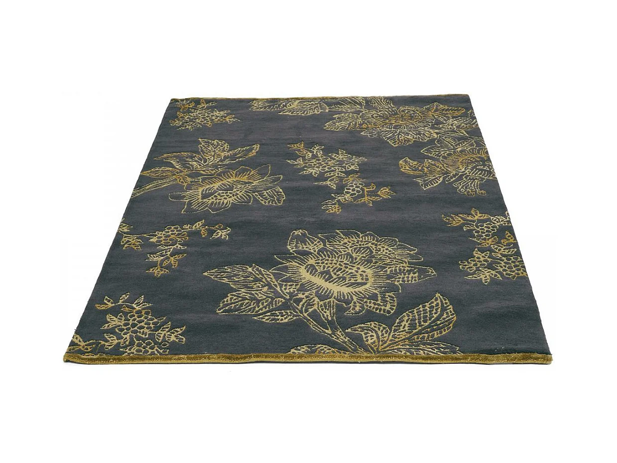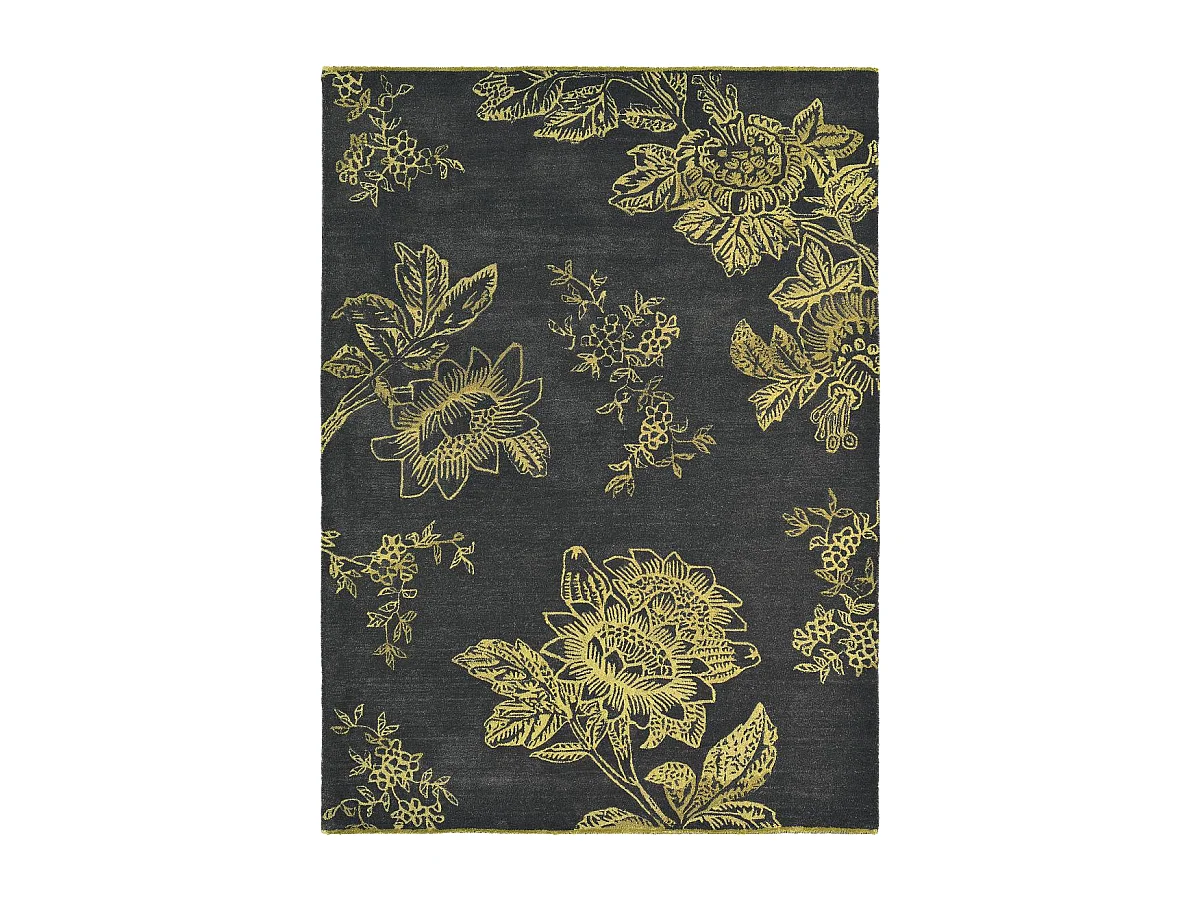 tapis salle à manger 250x350 fait à la main en laine noir et or motif floral