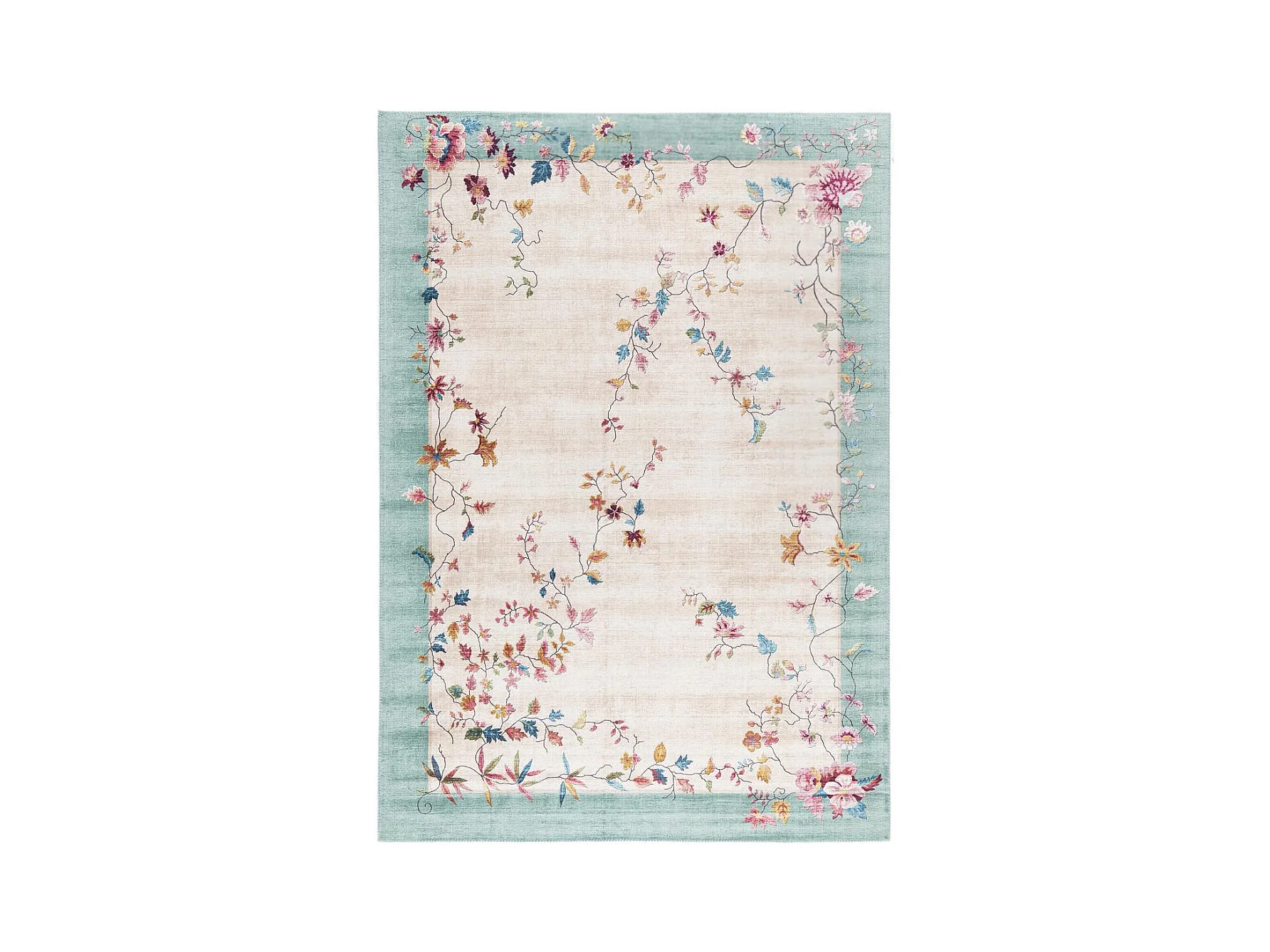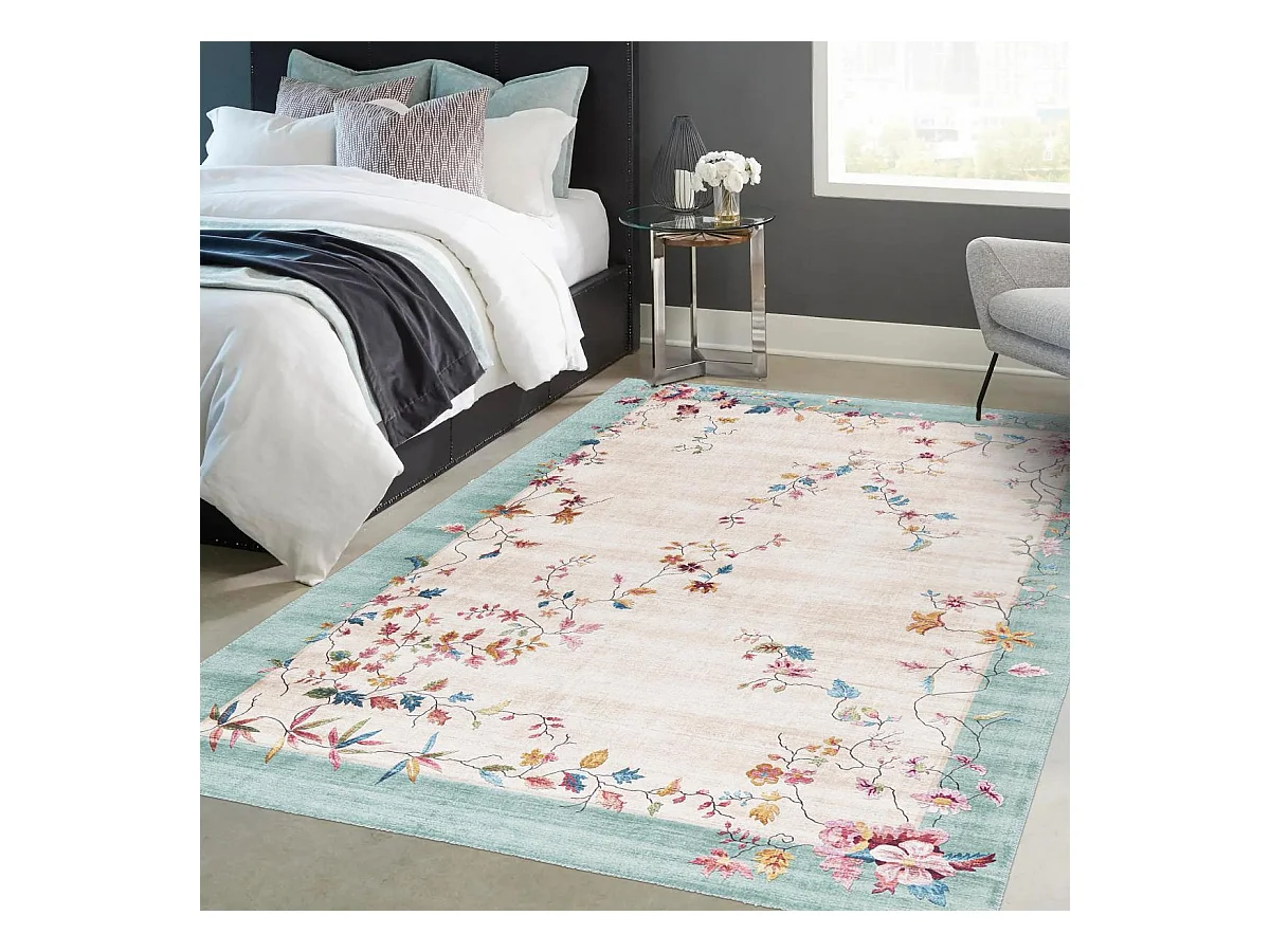 tapis salon 120x170 tissé rose et bleu rectangle motif floral VIVACE 7