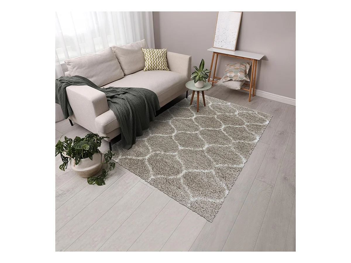 Tapis shaggy 120x170 rectangle tissé beige motif uni TAPITOP