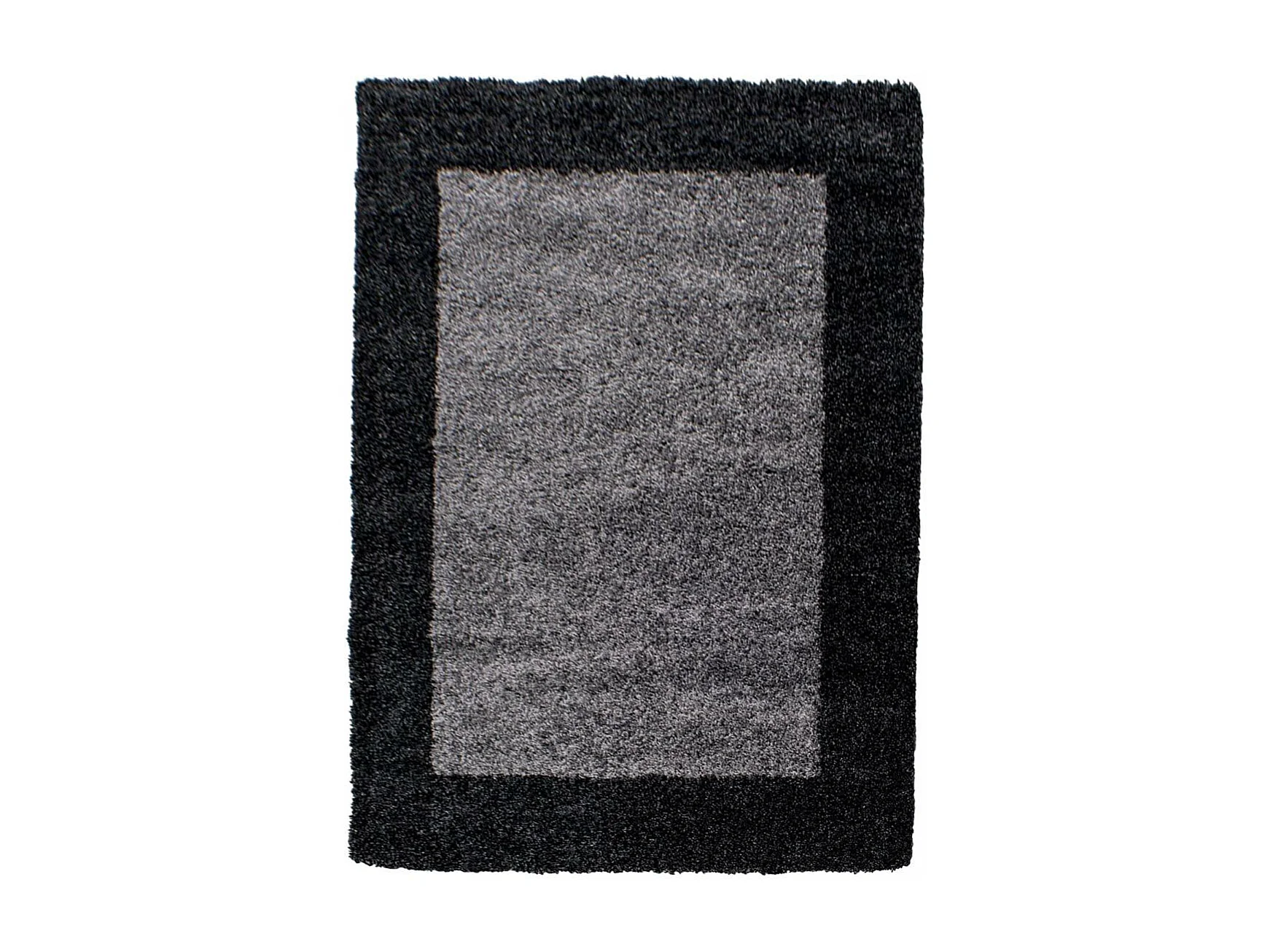 Tapis poils longs shaggy 200x290 rectangle tissé gris et noir motif damier