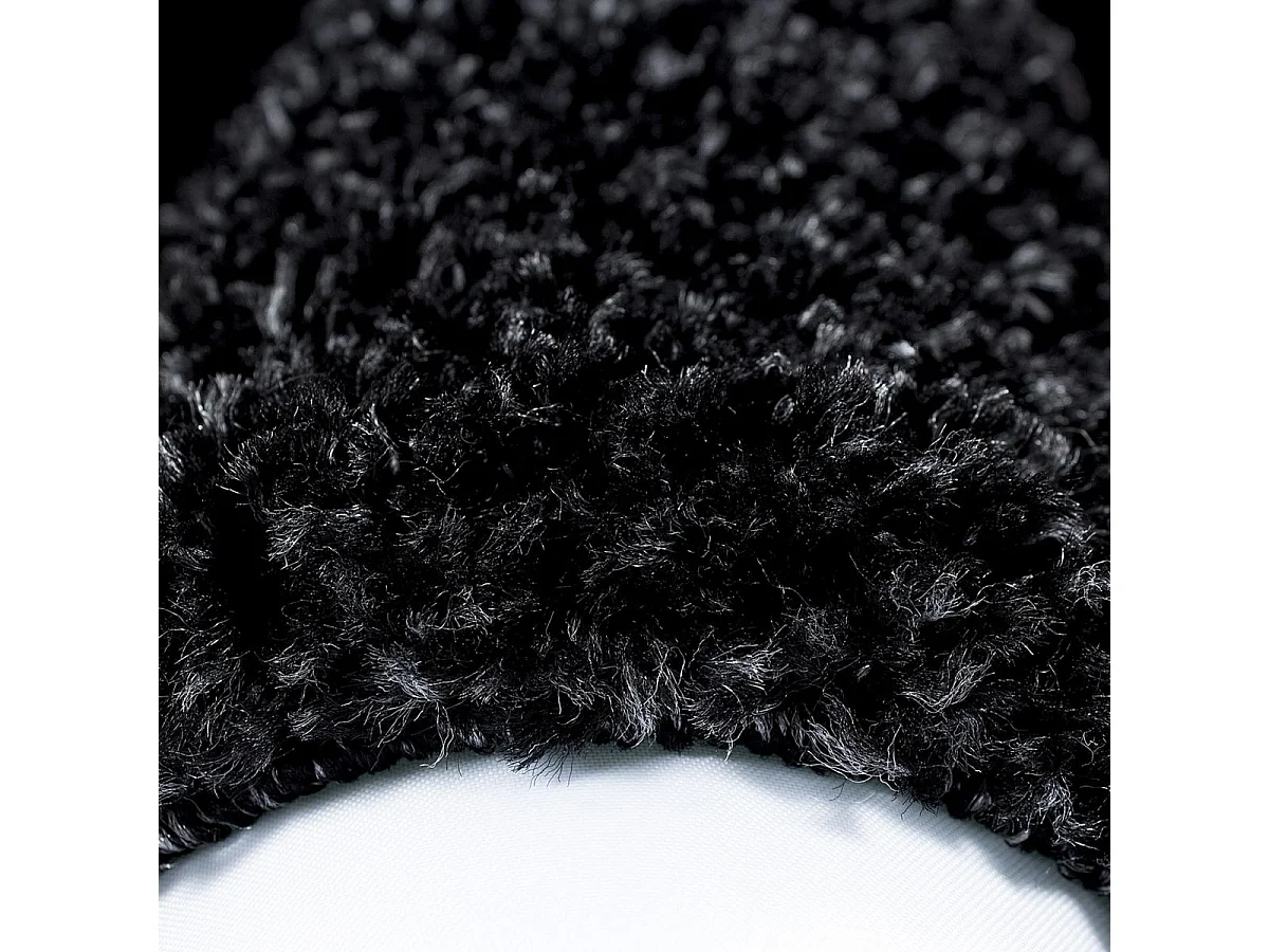 Tapis poils longs shaggy Ø80cm rond tissé noir motif uni UNI L