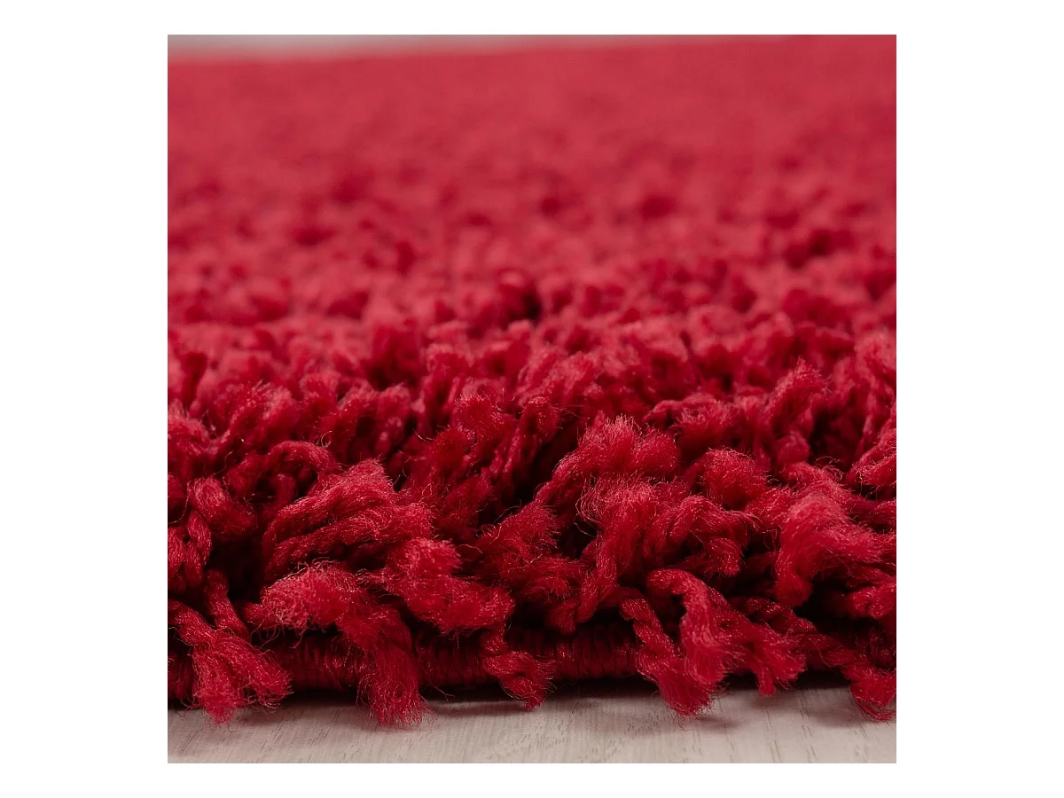 Tapis poils longs shaggy Ø200cm rond tissé rouge motif uni UNI L