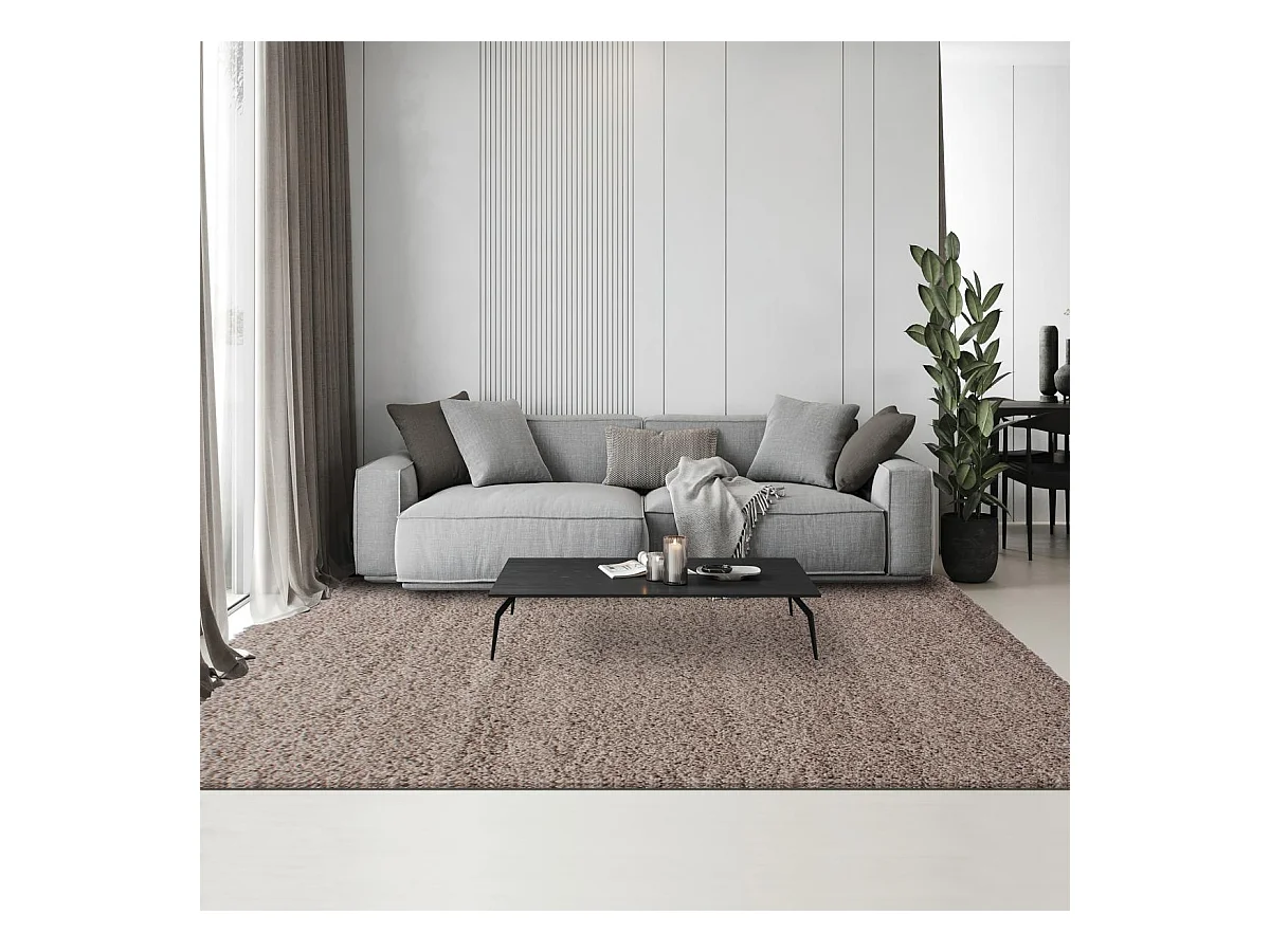 Tapis shaggy 160x230 rectangle tissé beige motif uni TAPITOP