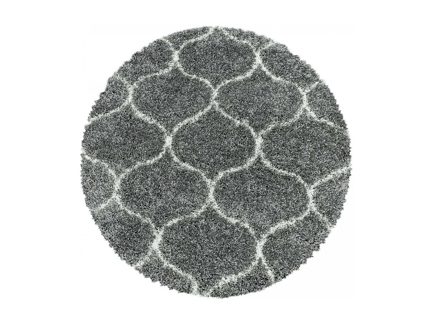 Tapis poils longs shaggy Ø200cm rond tissé gris clair et gris foncé