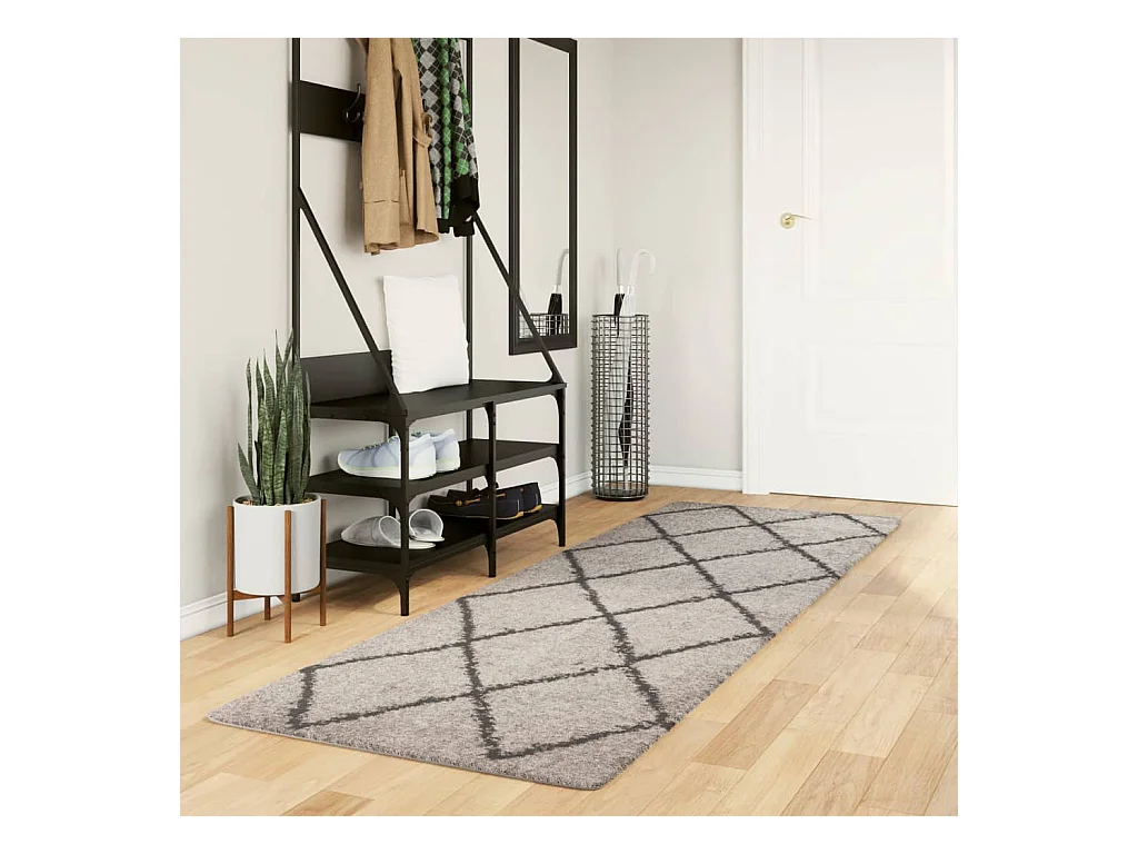 Tapis shaggy à poils longs moderne beige anthracite 80x250 cm