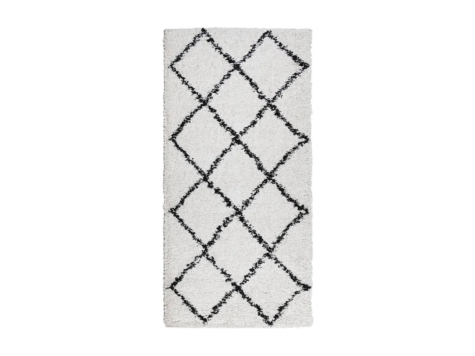 Tapis shaggy à poils longs moderne noir et crème 80x200 cm
