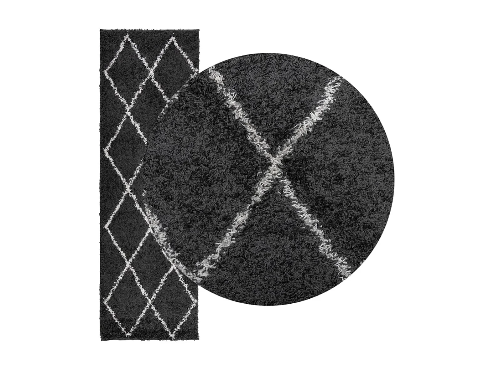 Tapis shaggy à poils longs moderne noir et crème 80x200 cm