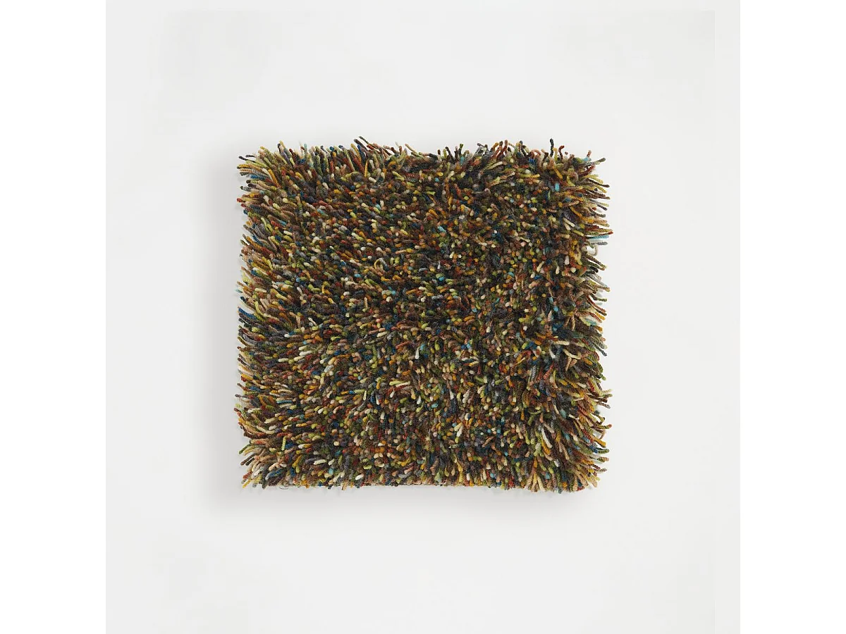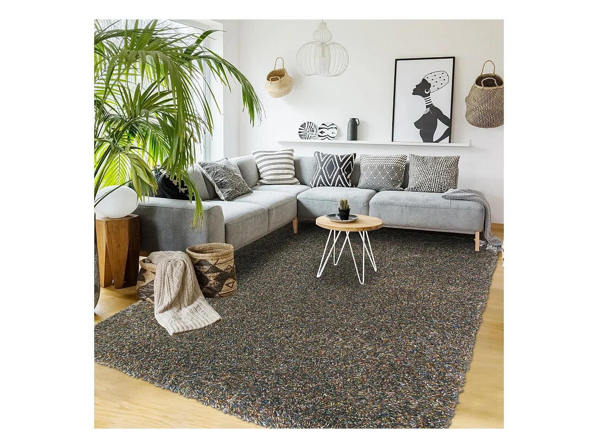 Tapis shaggy 140x200 rectangle tufté moutarde et marron en laine motif faux uni