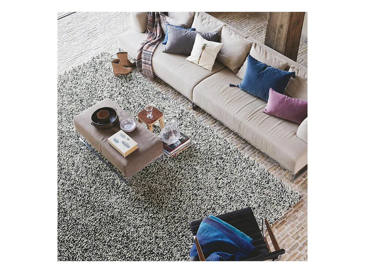 Tapis shaggy 200x300 rectangle tissé gris et blanc en laine motif faux uni ROCKS