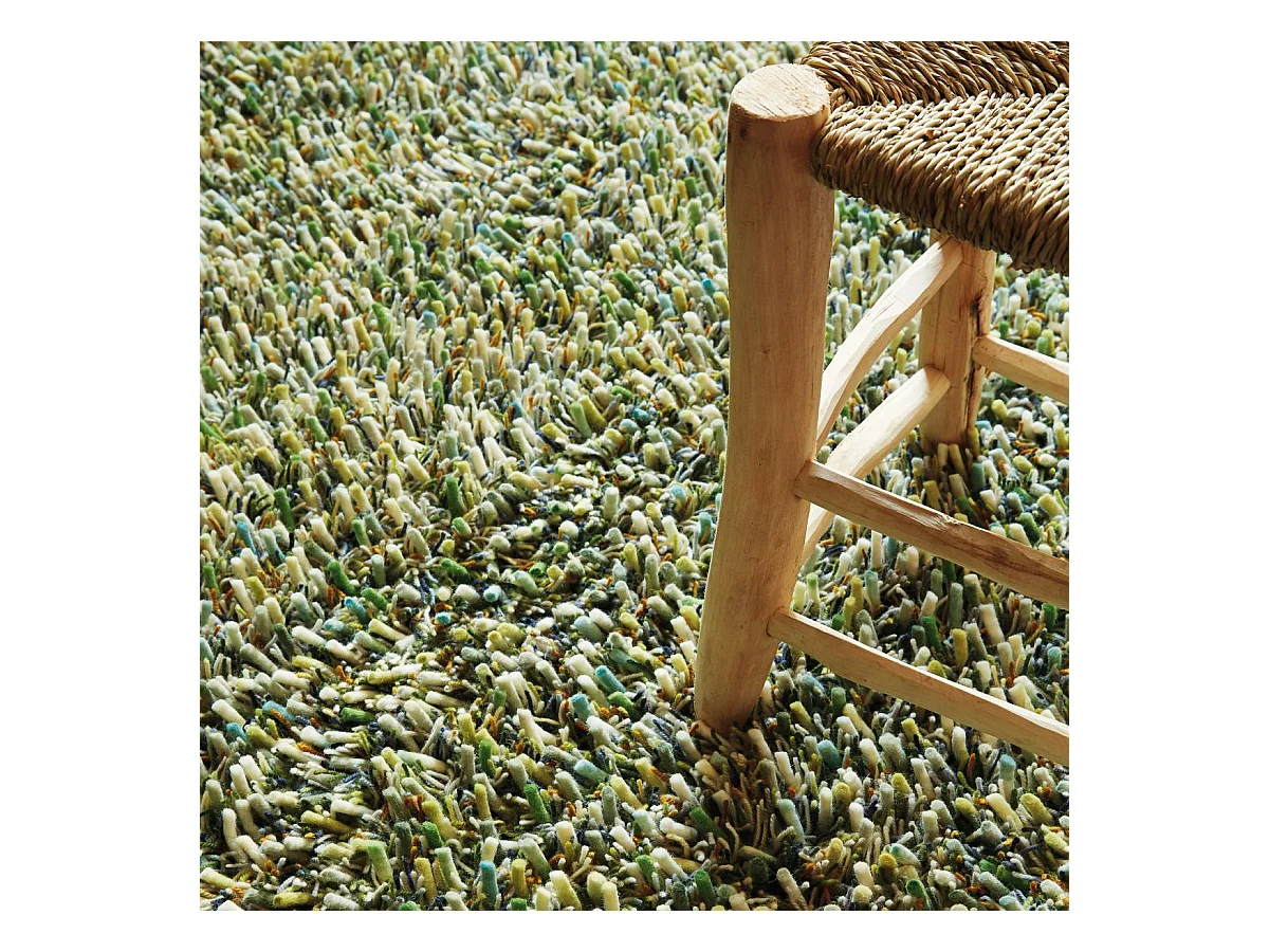 Tapis shaggy 140x200 rectangle tissé vert en laine motif faux uni SPRING
