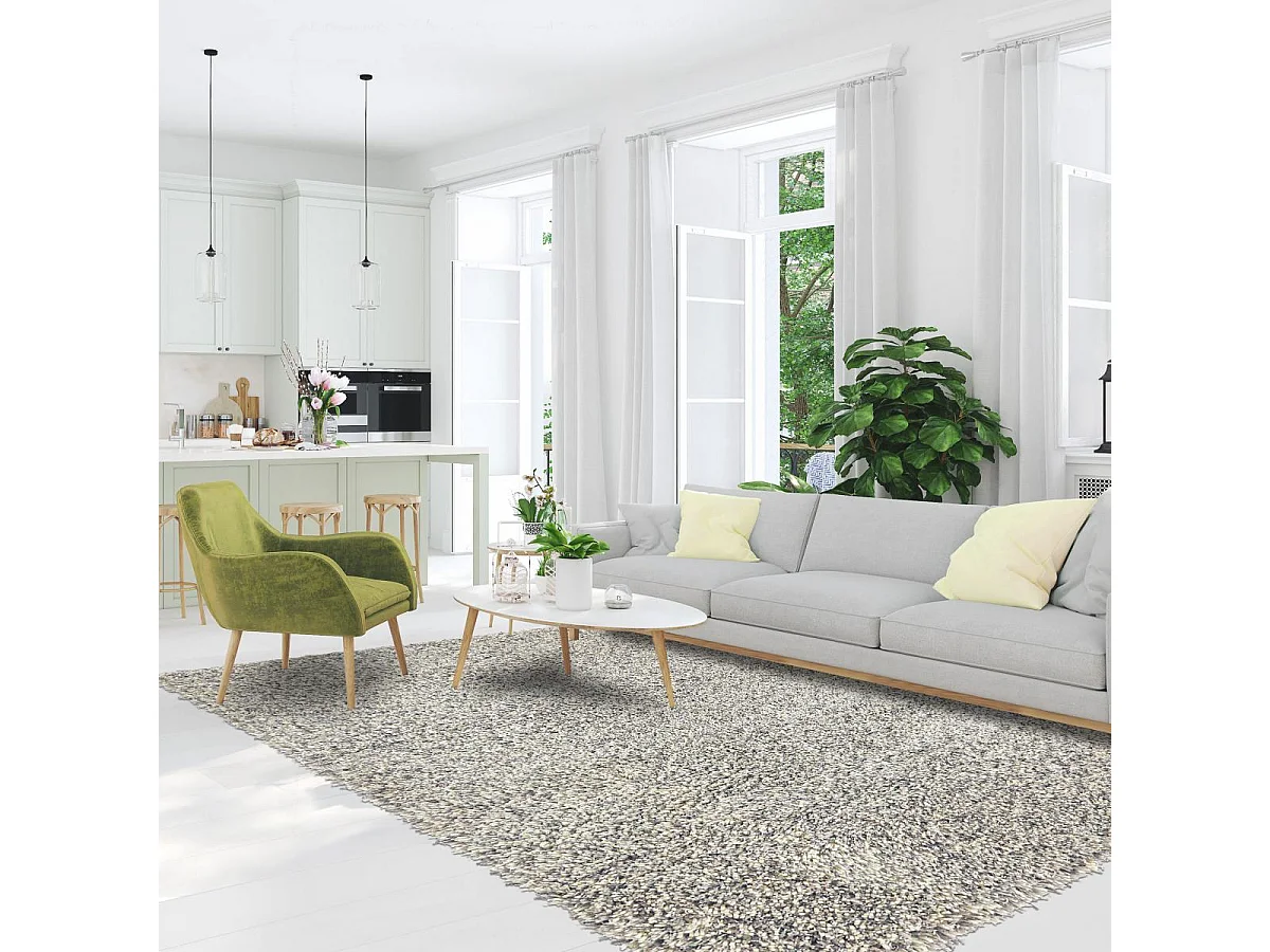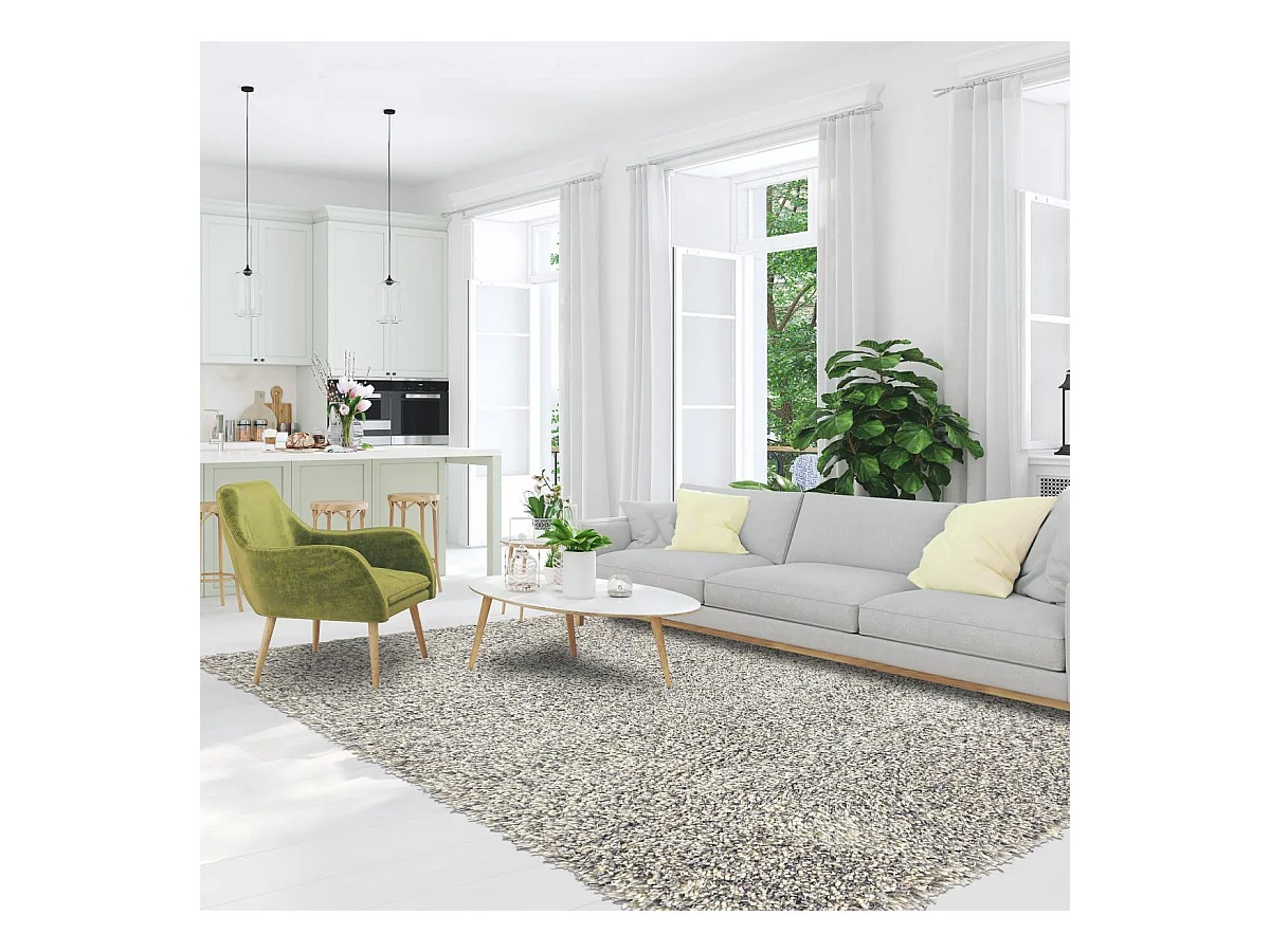 Tapis shaggy 140x200 rectangle tufté gris en laine motif faux uni YOUNG