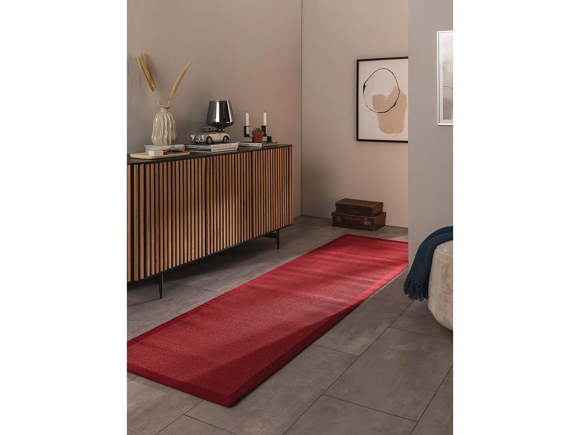 tapis entrée 120x170 tissé gris et rouge rectangle motif géométrique ROSALINE