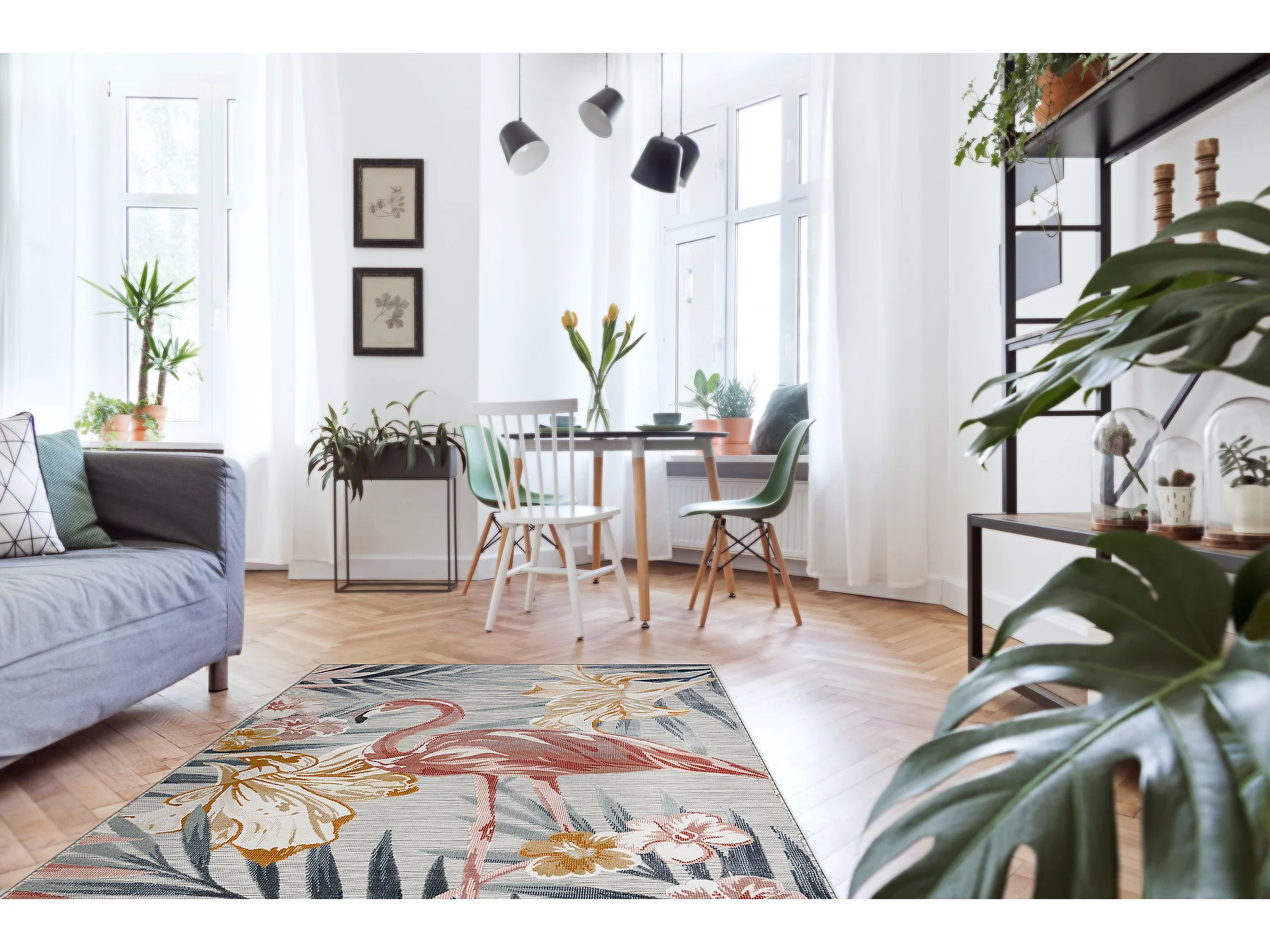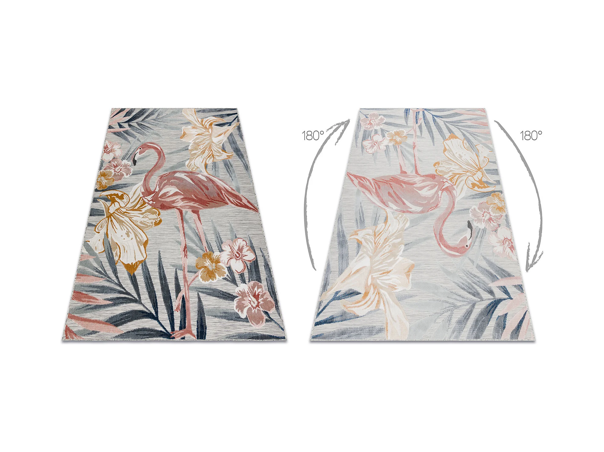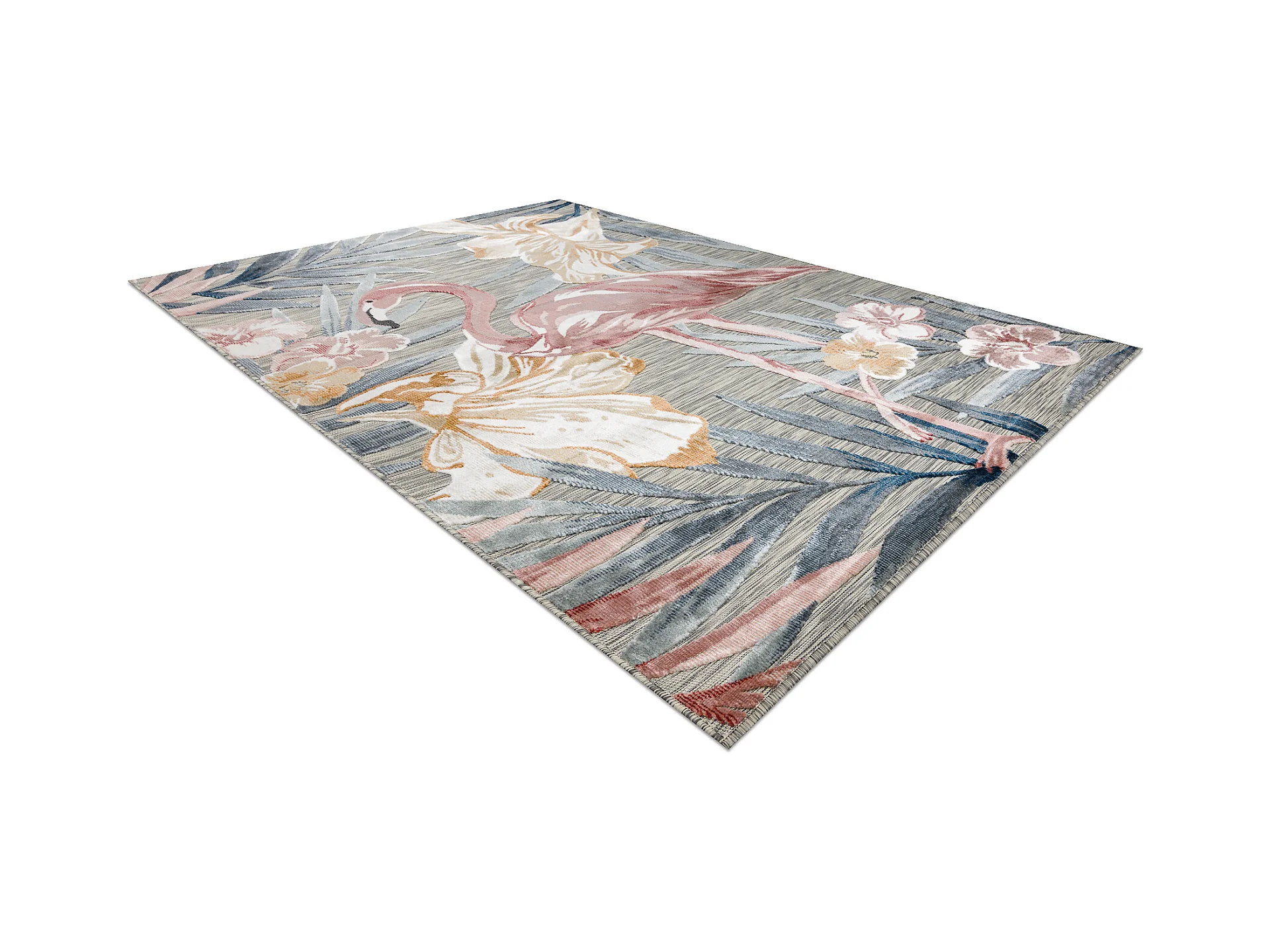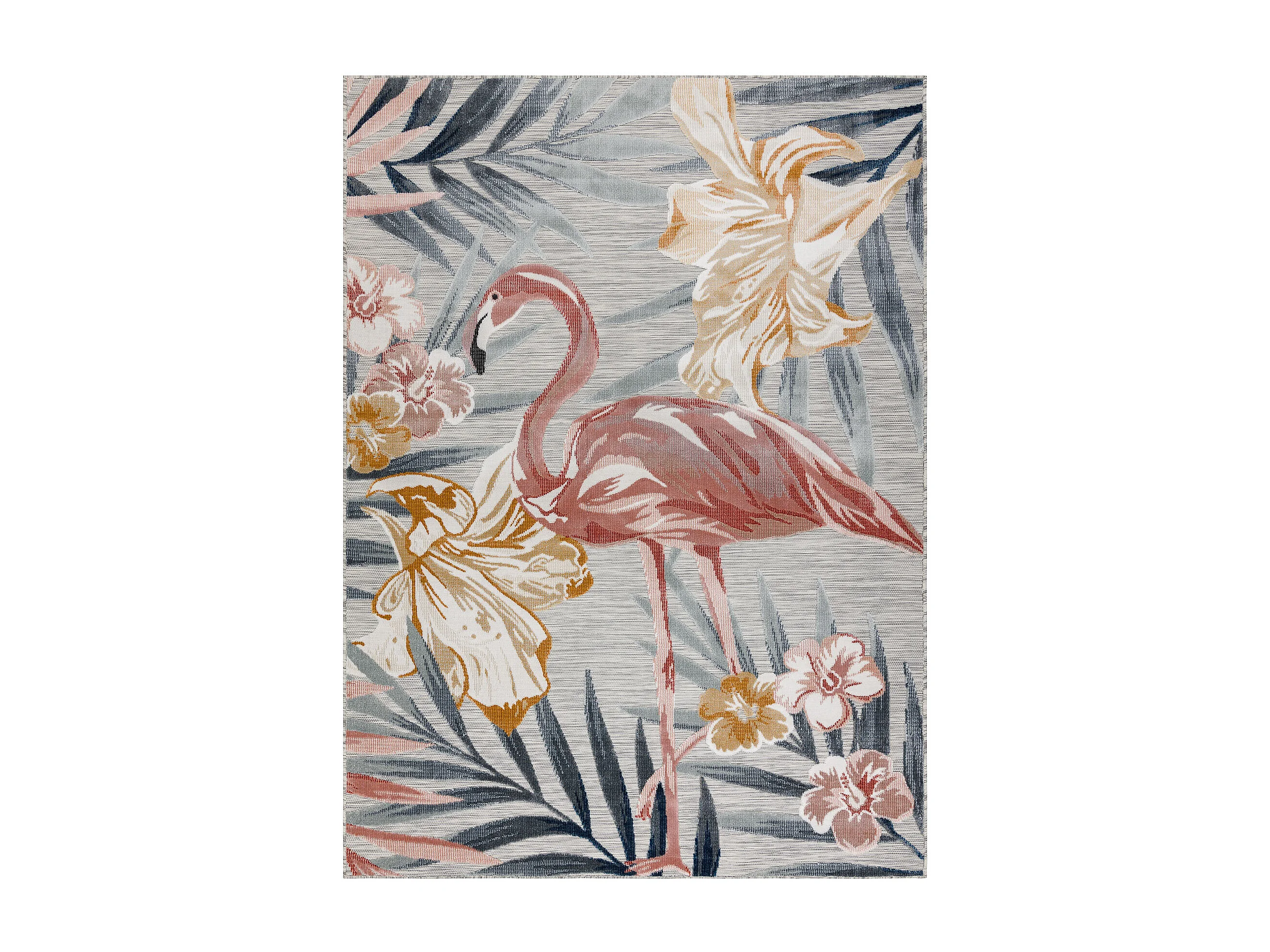 Tapis Structurel BOTANIC 65263 Flamant fleurs, feuilles tissé à plat 157x220 cm