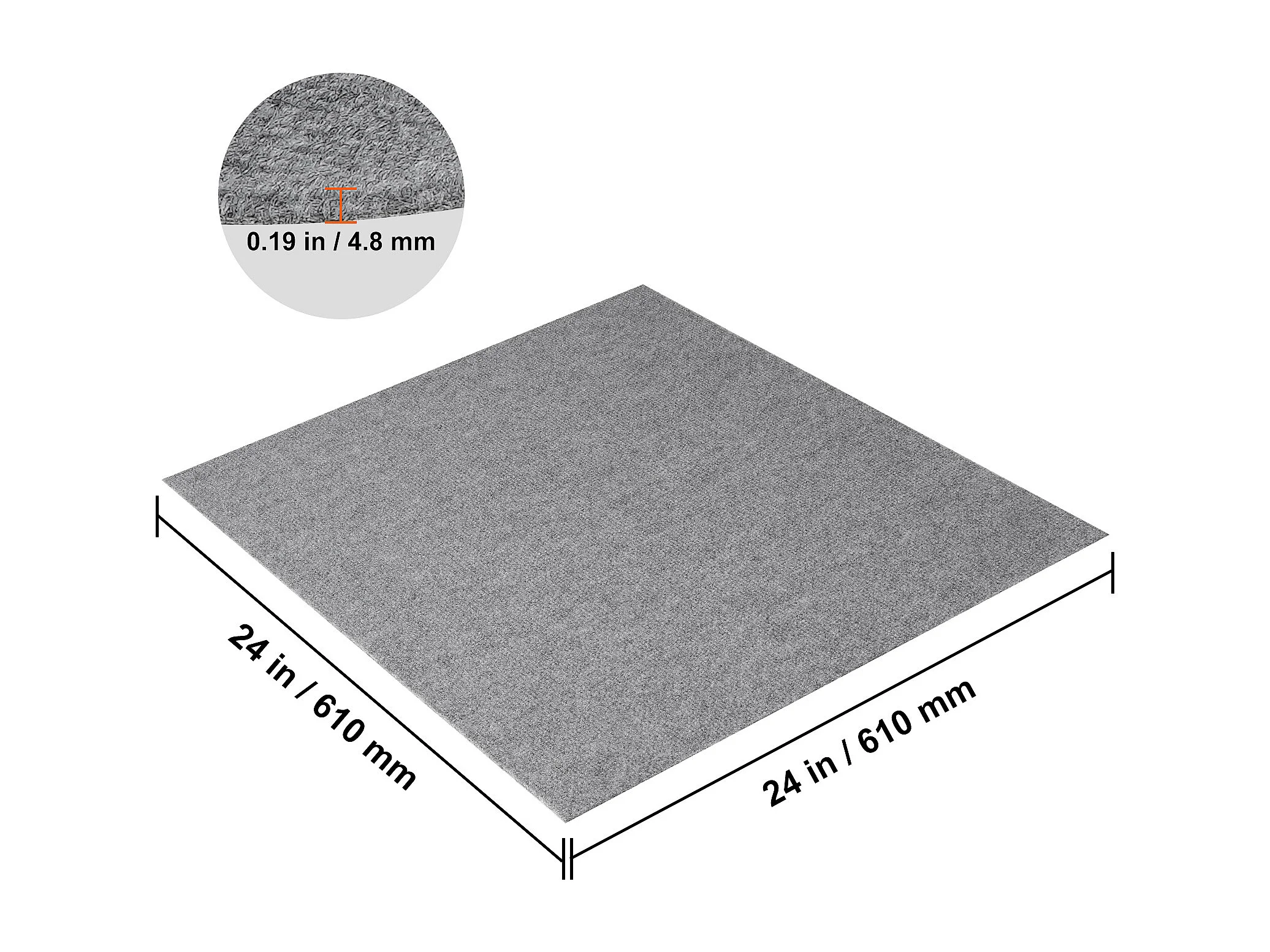 Tapis SucceBuy Dalles de Moquette Réutilisables, 24 Pièces 60.96CMx60.96CM Carrés avec Rembourrage Attaché DIY - Gris Mélangé