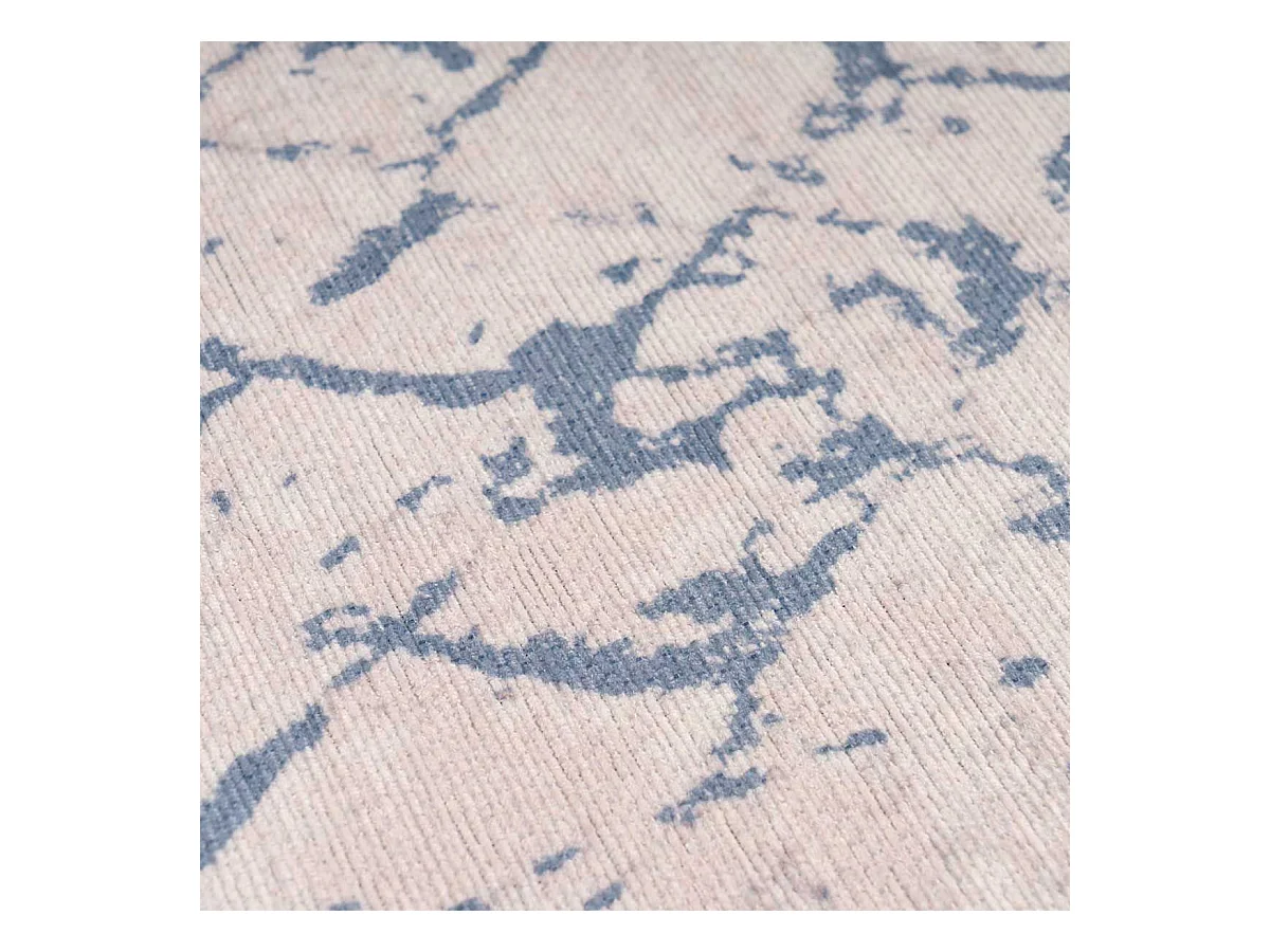 Tapis Tissé Imprimé Vintage "Peron IV" Blanc & Bleu 120 x 180 cm